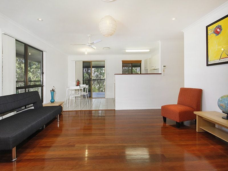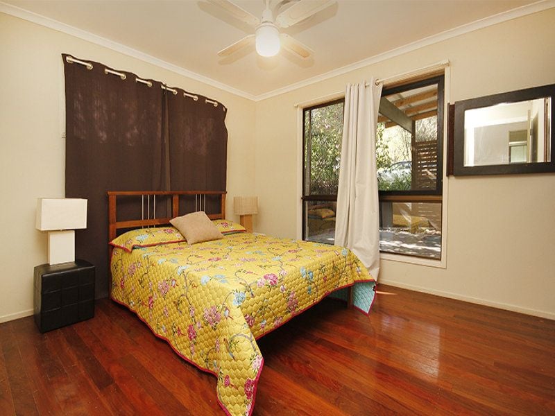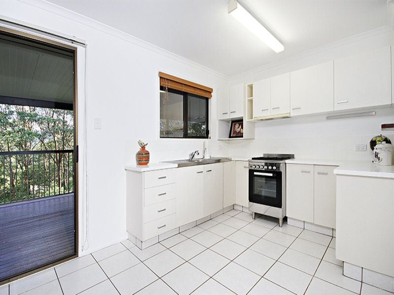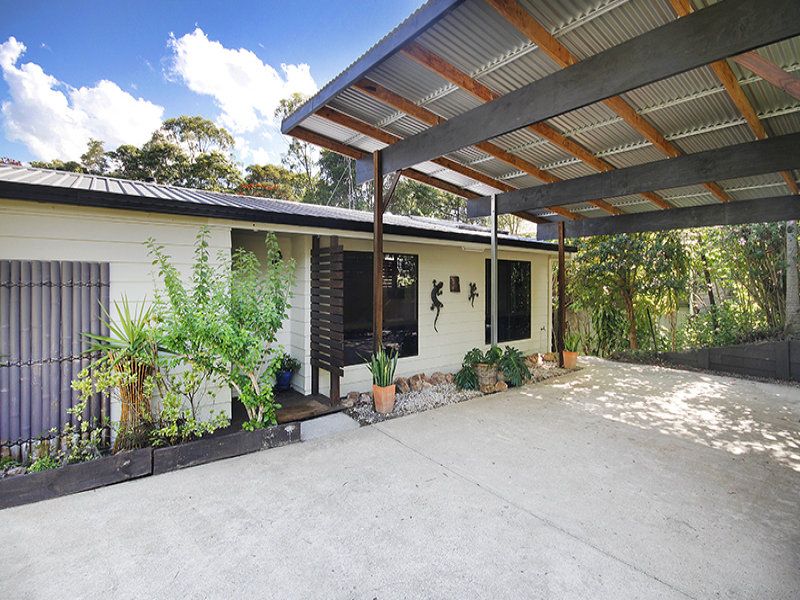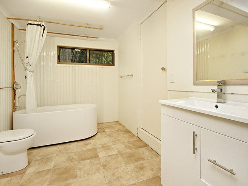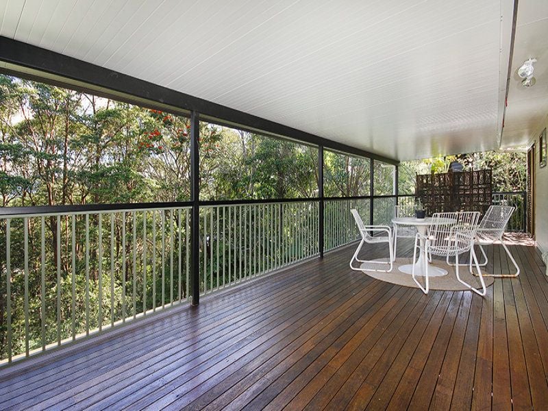 Tastefully refurbished the home is complete with three bedrooms, one bathroom, open plan living and dining with polished floors, light and airy modern kitchen, study with built-in shelving, huge rumpus room on second level and an expansive, private rear alfresco entertaining deck framed by lush rainforest.