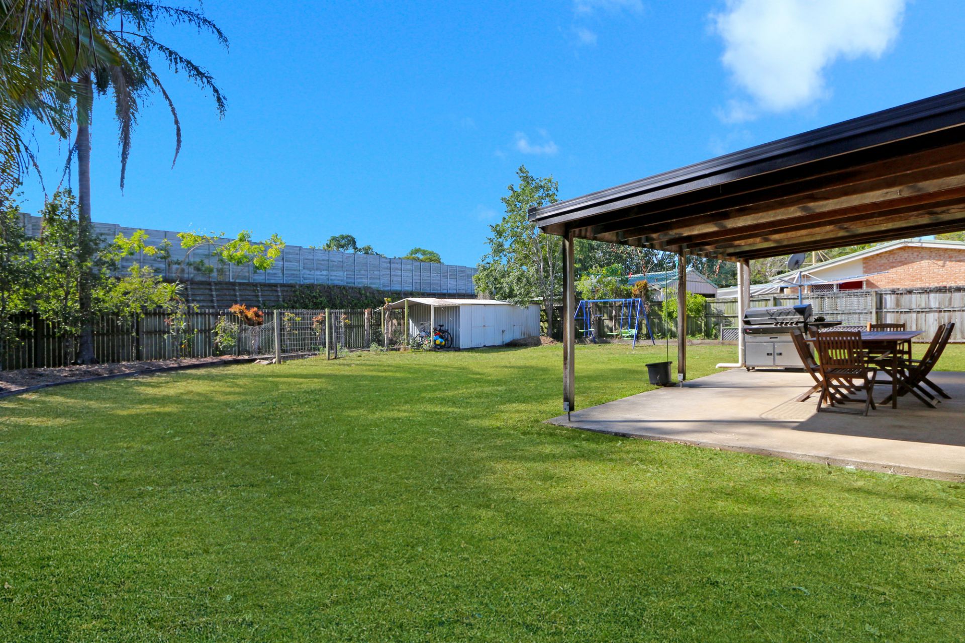 Bathed in natural light, the home is positioned on a 762 square metre level block and features three bedrooms and one bathroom. Positioned at the front of the home, the open plan lounge, dining, and kitchen provides a great place for the family to come together. This space opens onto the rear covered patio which overlooks the more than generous sized rear yard with plenty of room for the children to play in safety within this fully fenced space, or a terrific area the family pet. There is also convenient rear yard access through the carport to park the boat or caravan.
