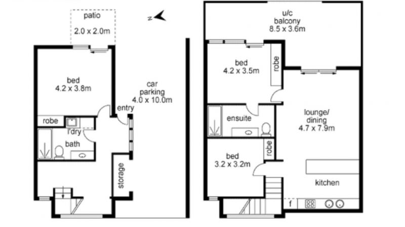 Over two levels, it is complete with three bedrooms, two bathrooms, open plan living, galley style kitchen, east facing covered upper balcony and ground floor patio, storage area and double car accommodation.