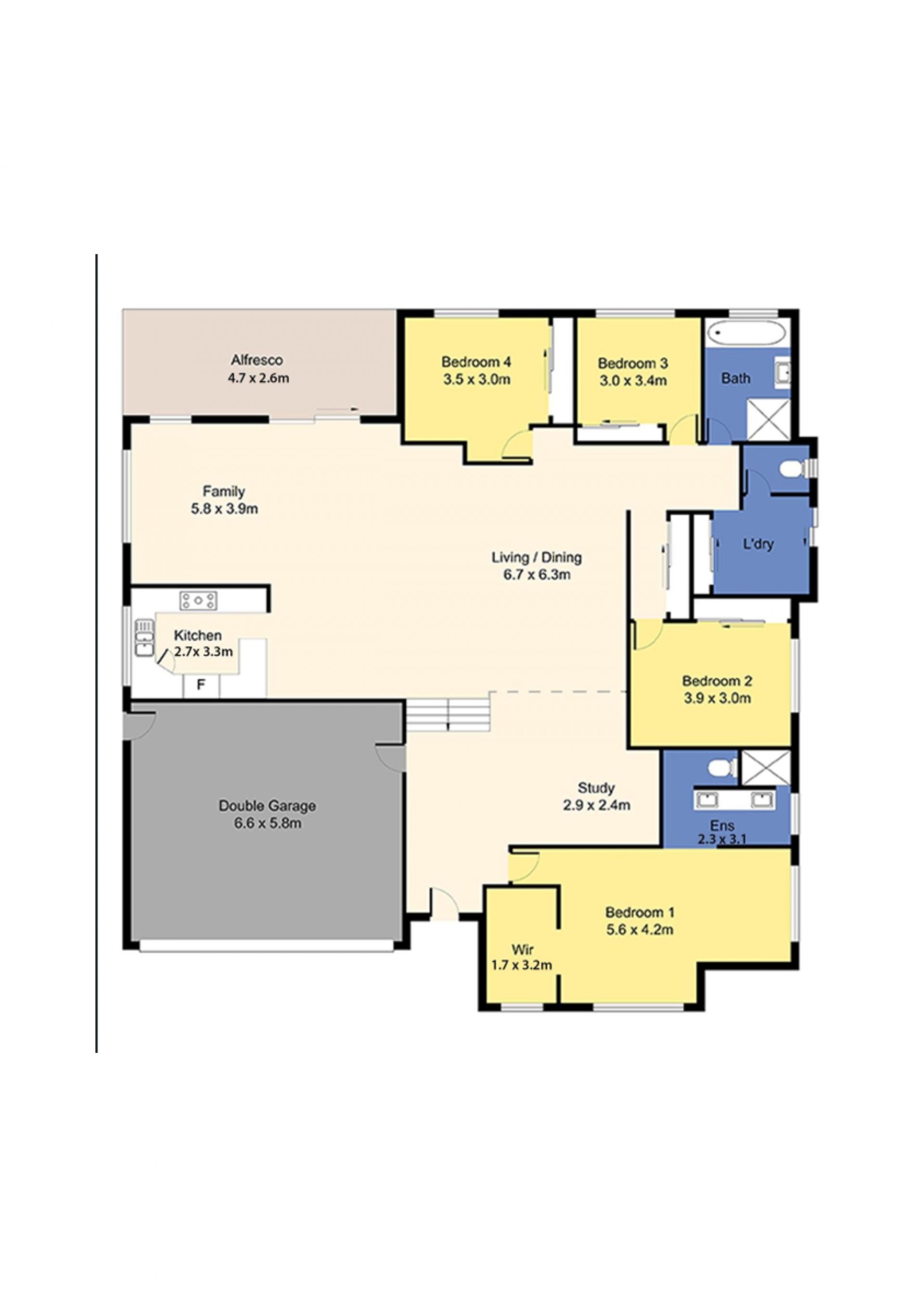 A well-designed floor plan facilitates excellent family-friendly living; complete with four bedrooms, two bathrooms, expansive open plan living and dining, study/2nd living area, contemporary kitchen, covered north facing alfresco entertaining patio, separate laundry with external access, and double lock up garage on a low maintenance 513m2.