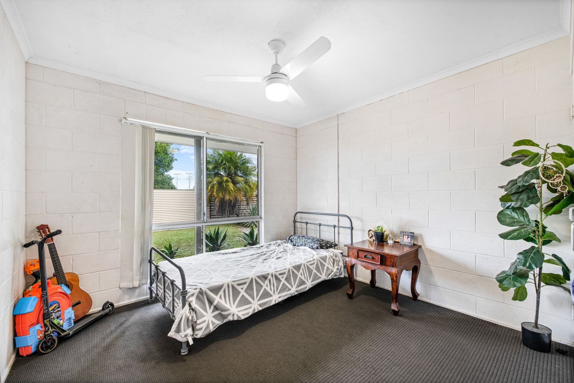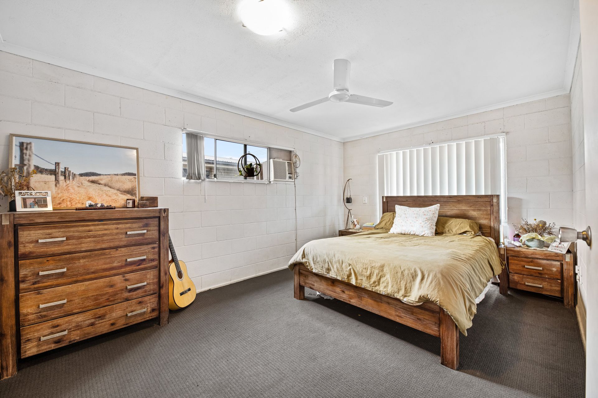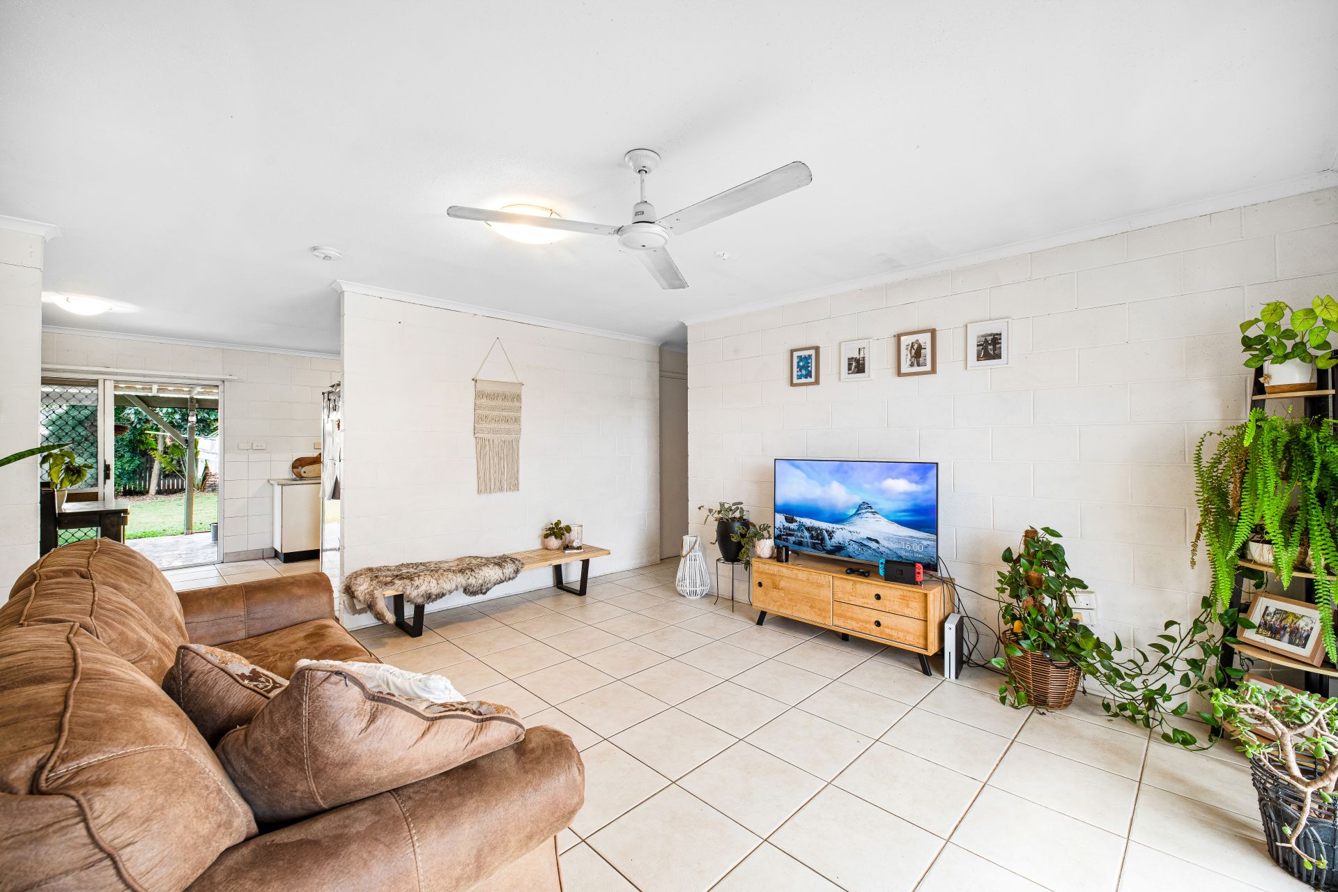 The king-size master bedroom features a ceiling fan, air-conditioning and a large built-in wardrobe, the other two spacious bedrooms also feature ceiling fans and built-in wardrobes. The main bathroom has a shower and vanity is serviced by a separate toilet.
