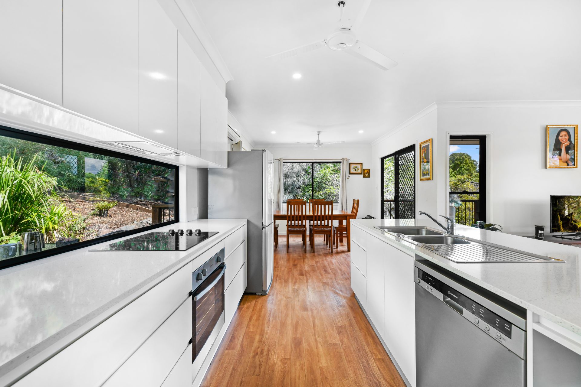 With a well-designed floorplan that can facilitate self-contained dual living as an option, the home comprises five bedrooms, three bathrooms, galley kitchen plus kitchenette, separate living areas, expansive covered upper deck, cosy rear patio, separate laundry, and triple covered parking, plus abundant onsite parking for boat/caravan/trailer and visitors.