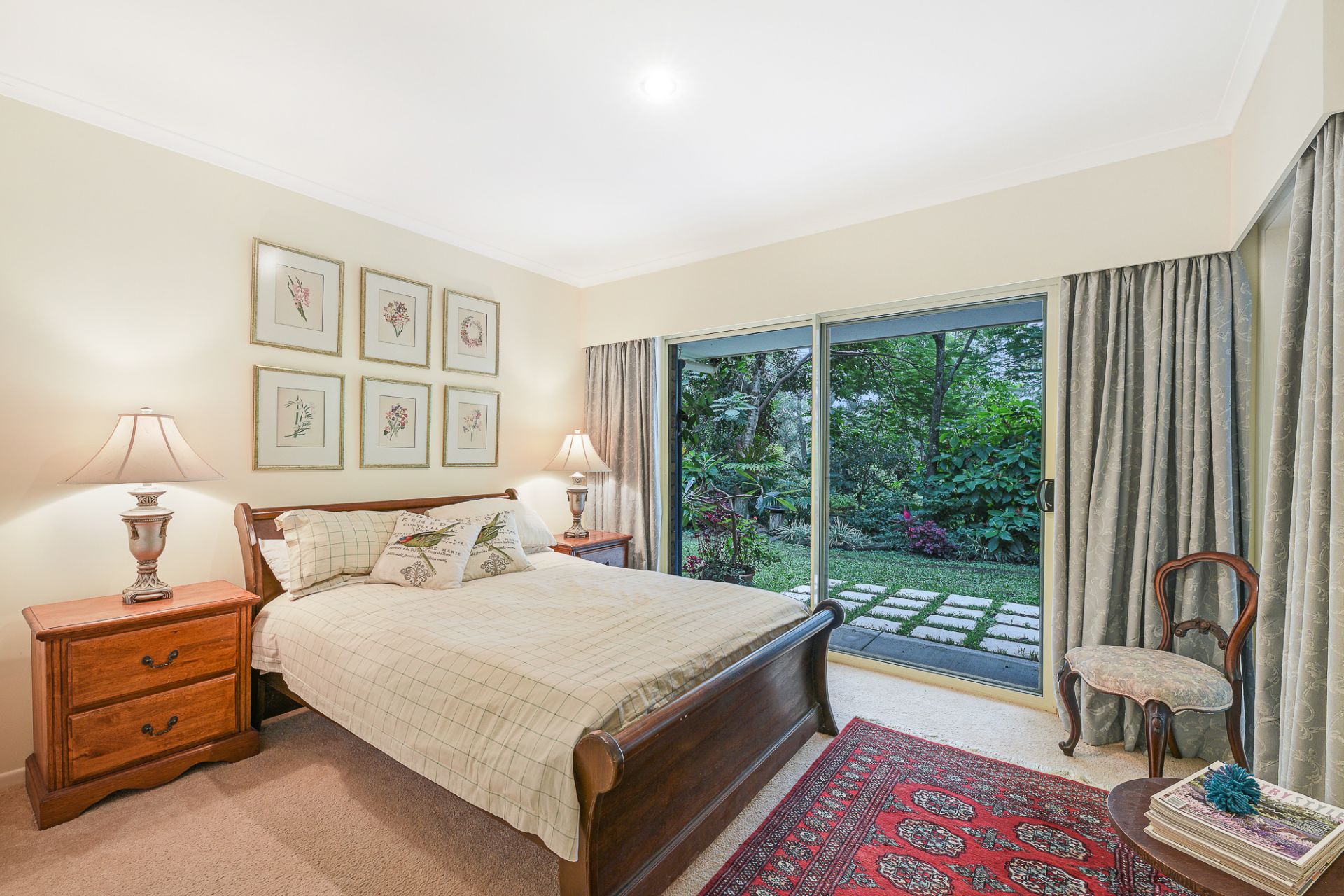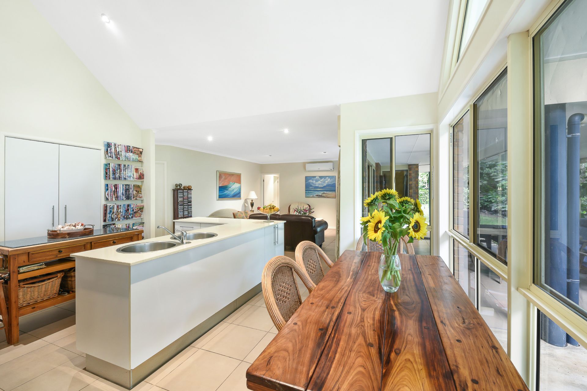 With large windows to showcase the glorious landscaped gardens that frame the home, there is a delightful outlook from every room. Other features include 9-foot ceilings, raked cathedral ceiling in the kitchen, stainless steel appliances, stone benches, gas cooktop, split-system air-conditioning in formal lounge, external access from master and second bedroom, gas hot water, rainwater tank, and bicycle septic.