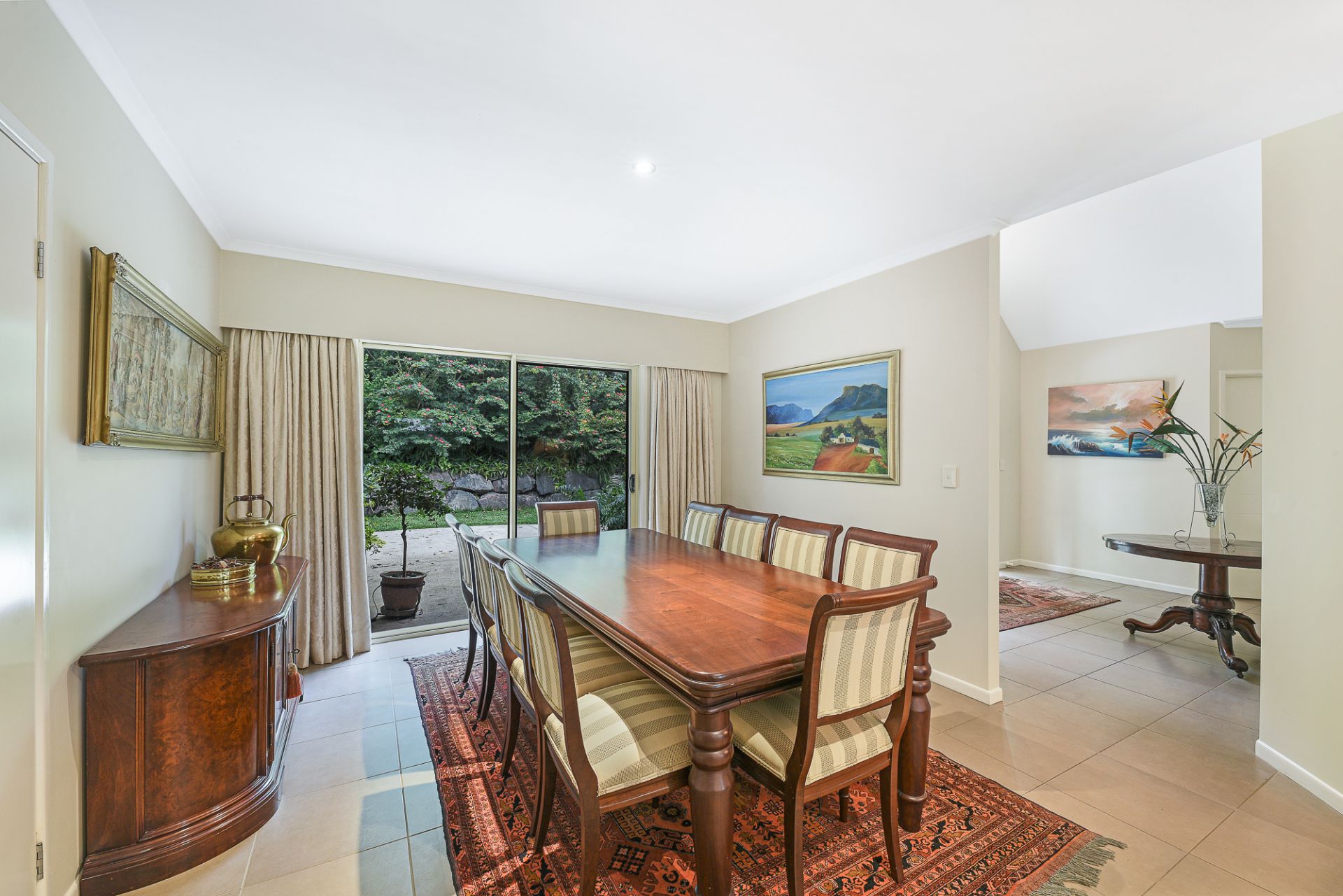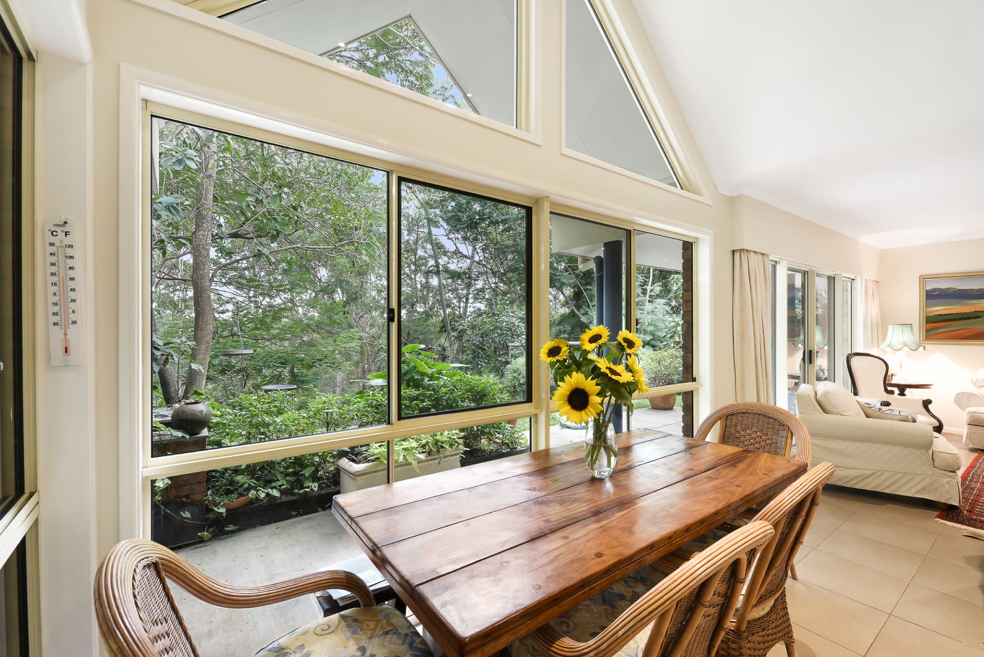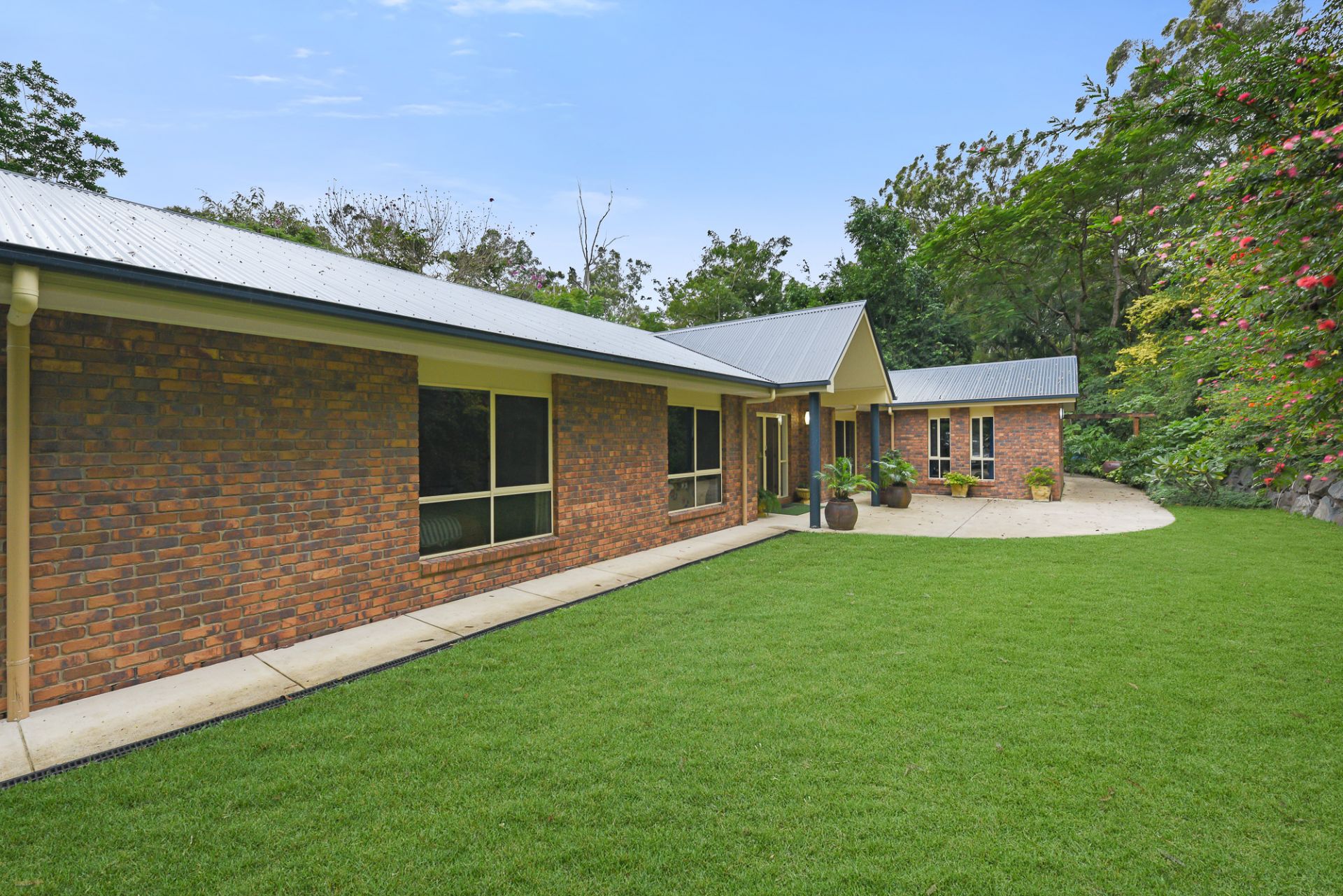 The grounds are lush, with well-established vegetation and mature trees; and the home has been strategically positioned on the most elevated part of the block to maximise privacy, views, and aspect.
