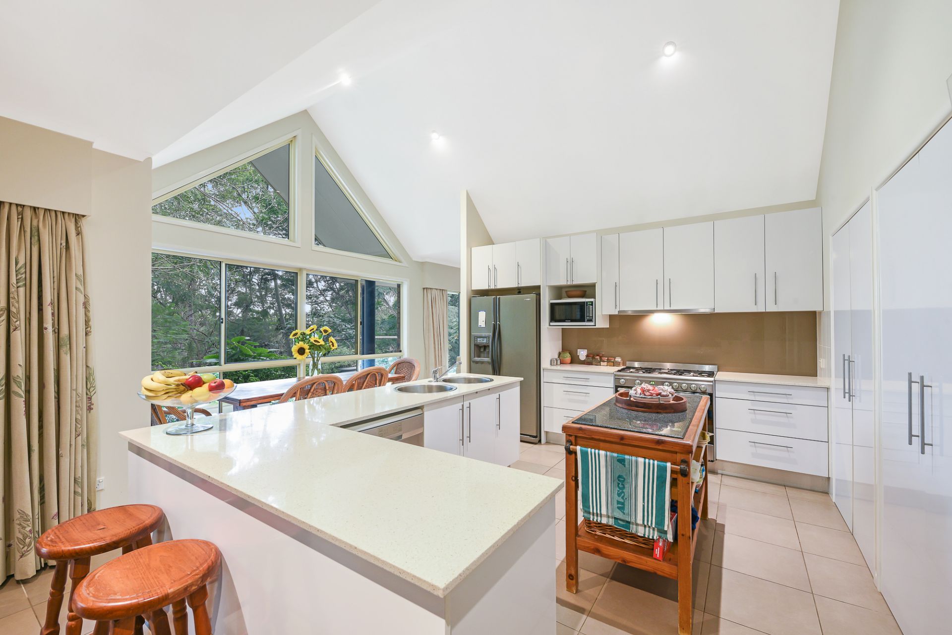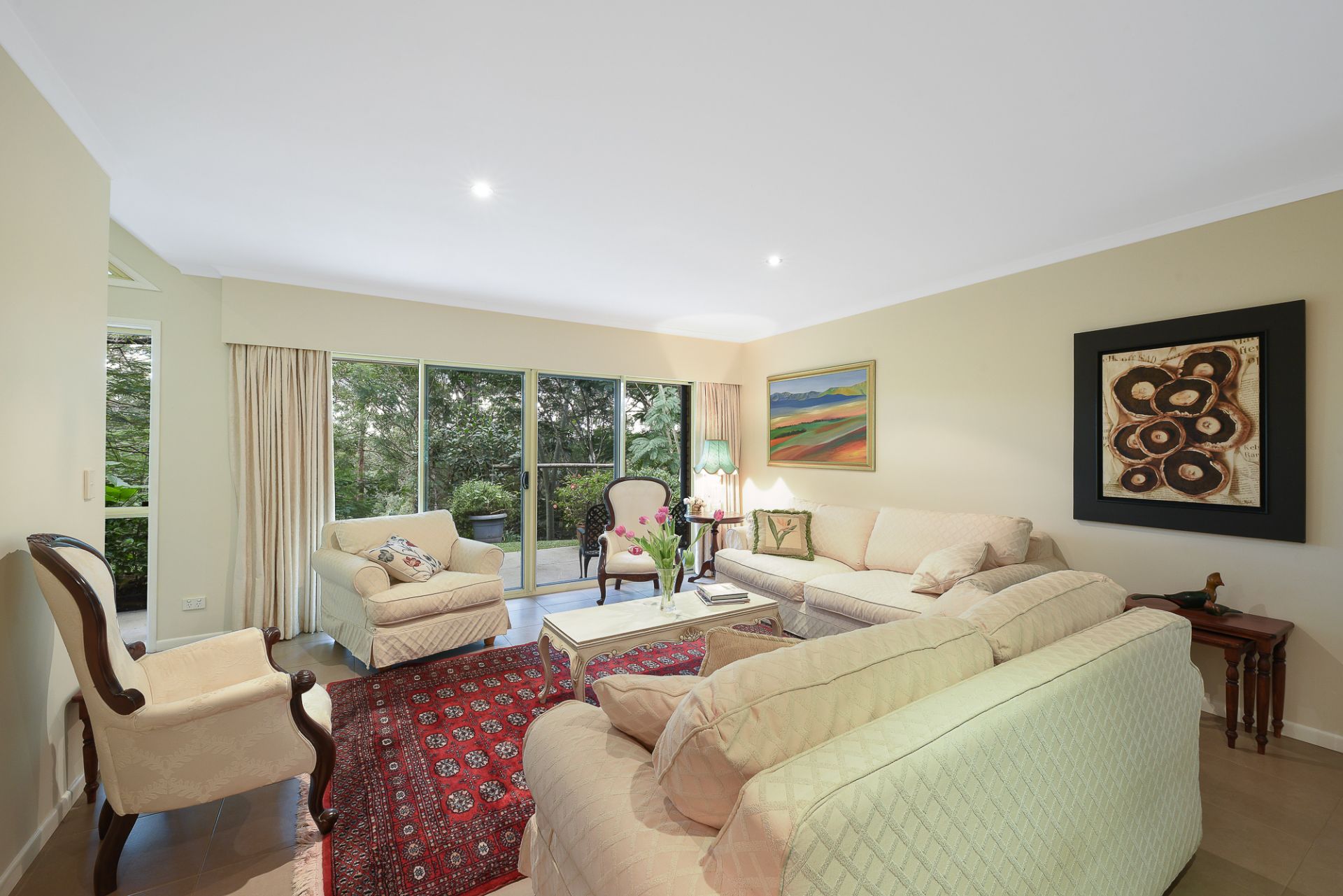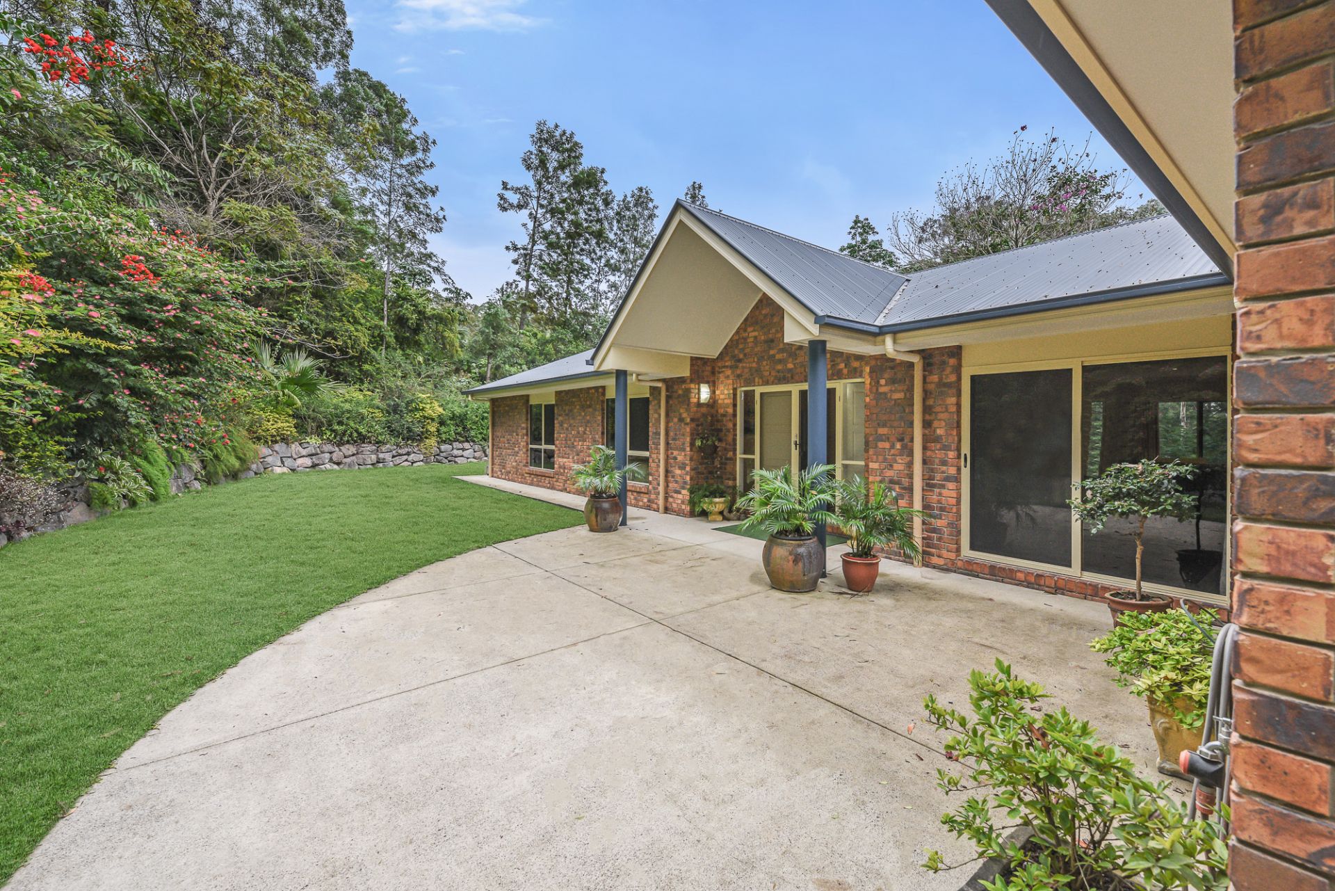The grounds are lush, with well-established vegetation and mature trees; and the home has been strategically positioned on the most elevated part of the block to maximise privacy, views, and aspect.
