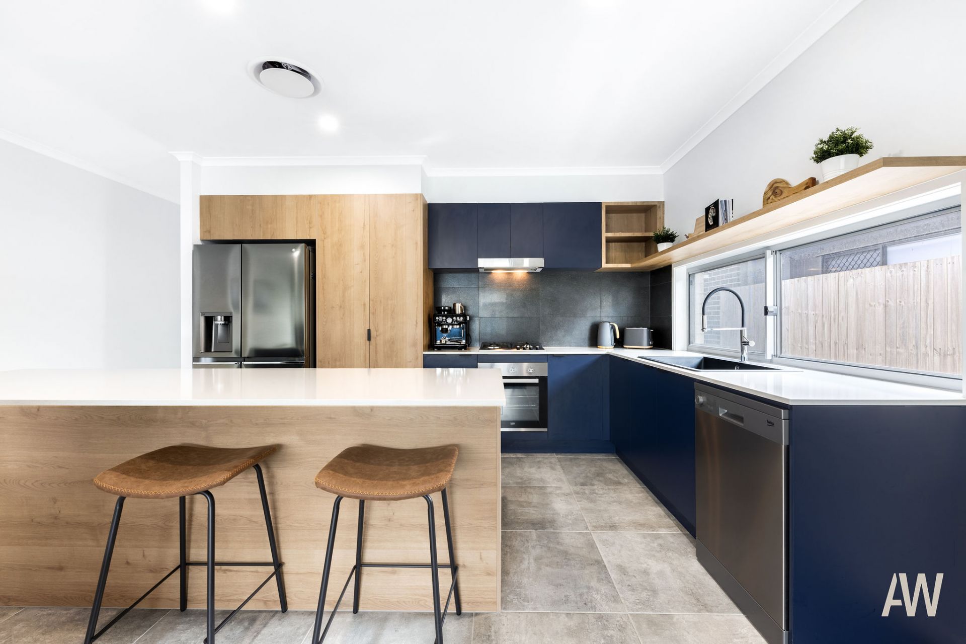 High ceilings, ducted air-conditioning, ceiling fans, 20mm stone island bench with waterfall edges in kitchen, stainless steel appliances, gas cooktop, plumbing for fridge, soft close cabinetry, separate shower and bath in main bathroom, security system, carpet in media and bedrooms, 5,000-litre rainwater tank connected to grey water, and 10kW solar system with 8kW inverter – are all existing features of note that enhance appeal, plus the eco-friendly inclusions will save you money.