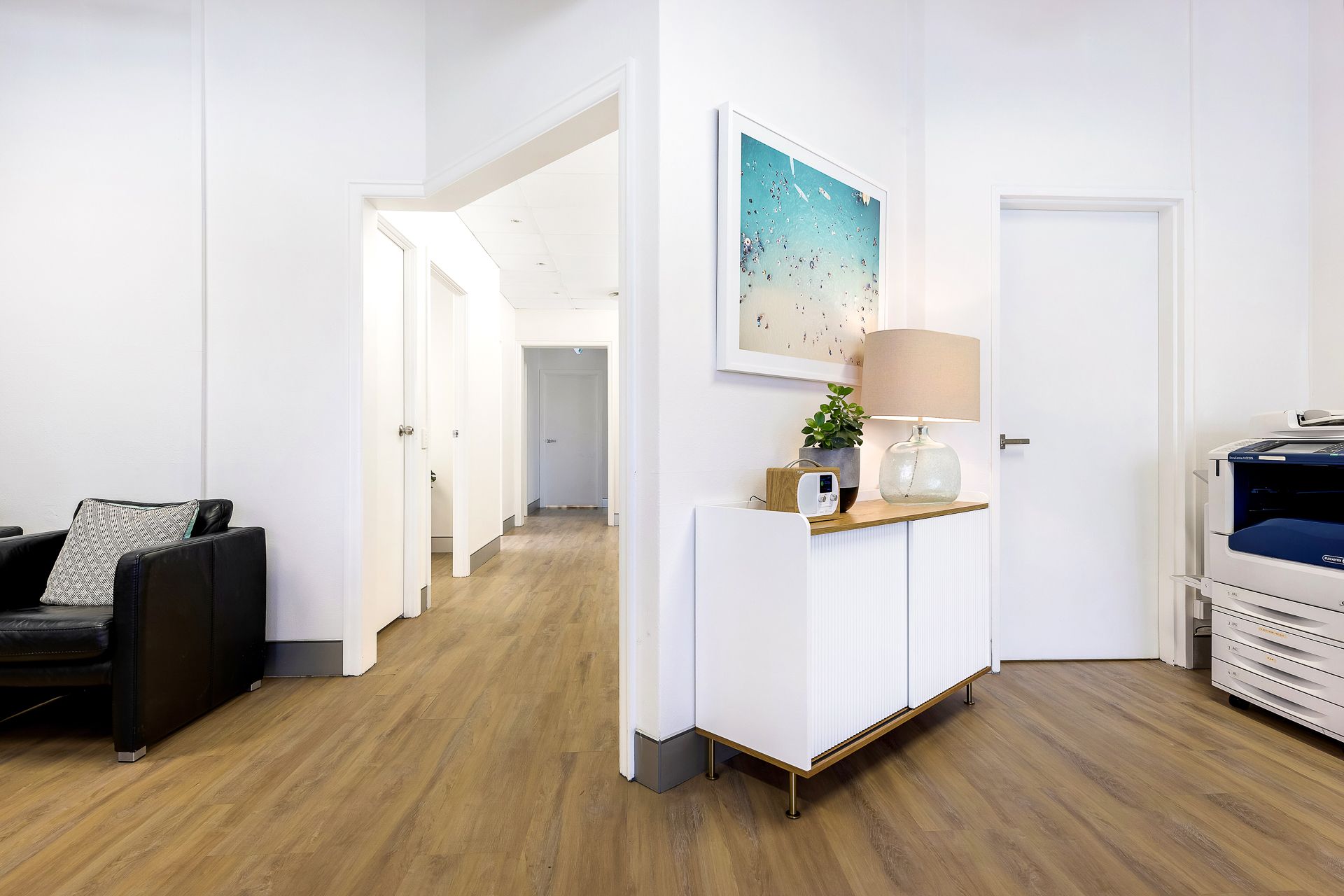 Impress your clients with our stylish, modern office featuring a welcoming shared reception area and convenient visitor parking. Make use of our state-of-the-art 12+ person boardroom, equipped with a 75-inch TV, HDMI connection, Apple TV, and coffee facilities. Alternatively, opt for more intimate meetings in one of our two formal 4-person rooms. There is no need to worry about internet speed, as you will have wireless access to our NBN network.