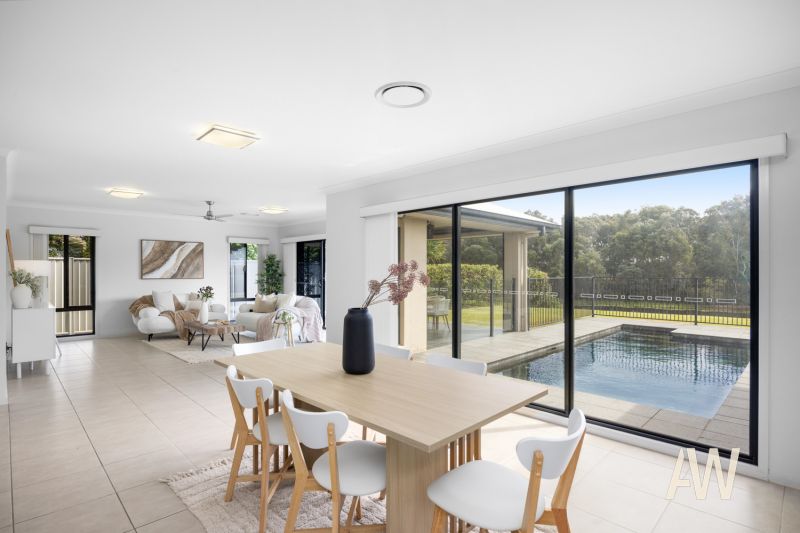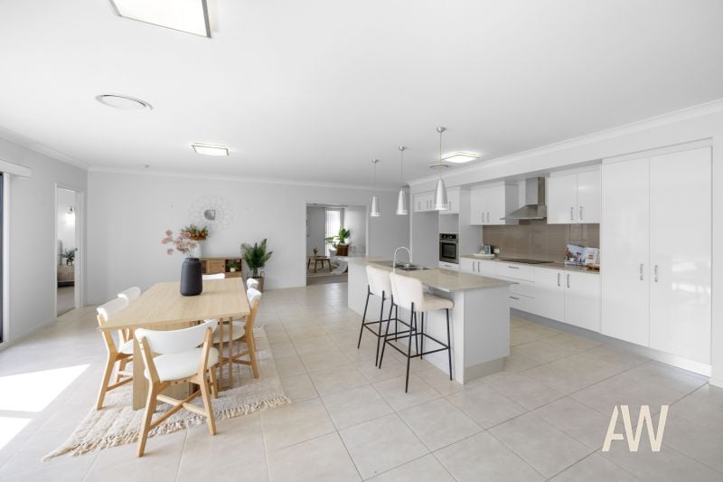As you enter, you'll be greeted by expansive open-plan living and dining areas that flow seamlessly to a spacious poolside entertaining zone. Whether you're hosting guests or enjoying a quiet family evening, this space invites effortless indoor-outdoor living in the best of Queensland's weather. The heart of the home is the gourmet kitchen, designed to impress, with sleek stone benchtops, quality appliances, and ample storage. It's a space where preparing meals becomes a pleasure, whether you're entertaining or enjoying everyday family life.