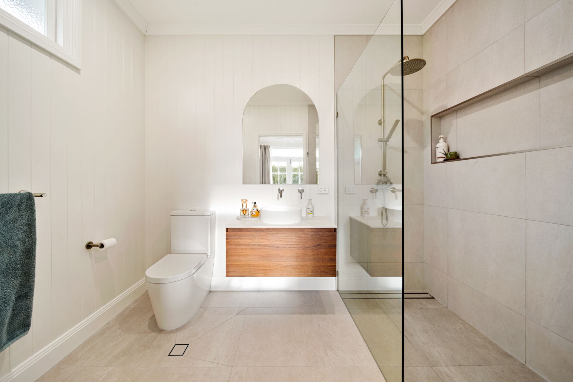 Accommodation comprises three spacious bedrooms, all with walk-in robes, including a master suite with private ensuite. A stylish main bathroom services the remaining bedrooms, with plantation shutters adding a refined finishing touch.
