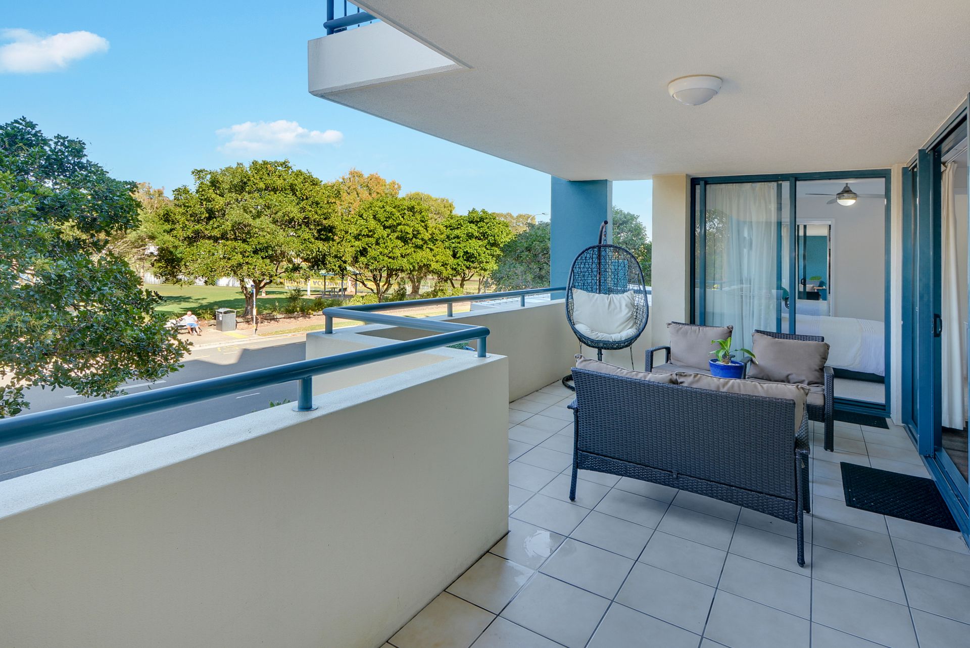 This floor plan is super functional and allows for very comfortable living. Both bedrooms feature ensuited bathrooms, new plush carpets, mirrored robes and access to the balcony which has a delightful view to Nelson Park, never to be built out, and the lagoon outlook is simply stunning.