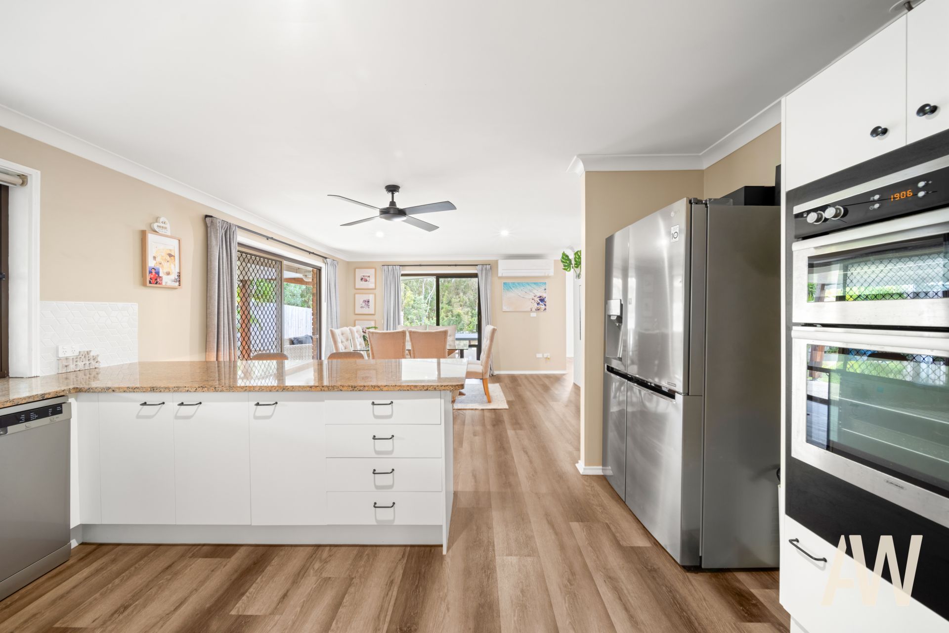 Across a single level, the home comprises formal entry foyer, three bedrooms, two living areas, central kitchen, expansive wraparound alfresco entertaining, separate laundry with external access to sunny drying courtyard, and double lock-up garage.