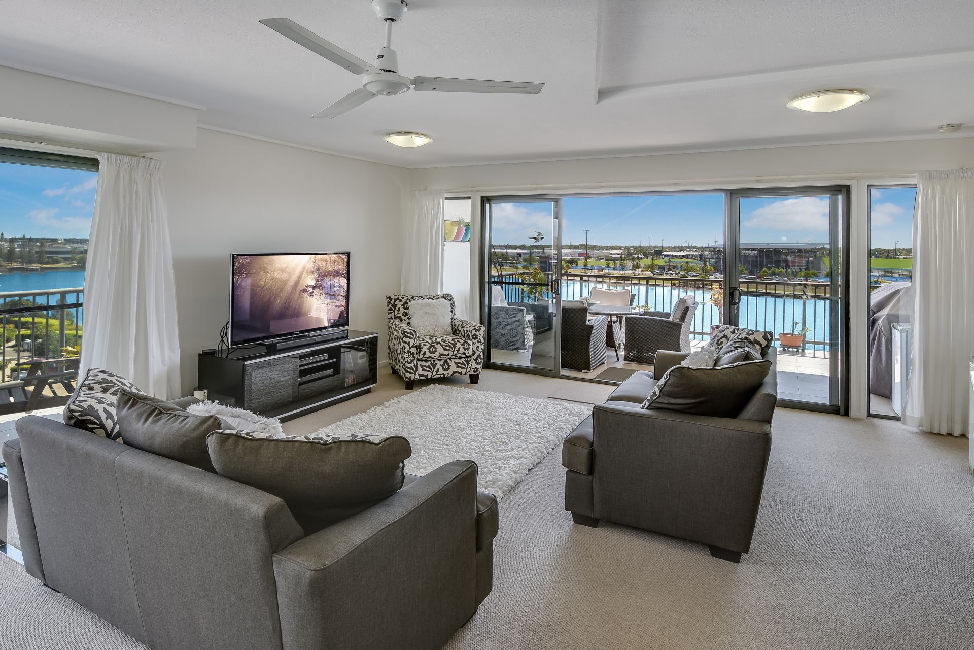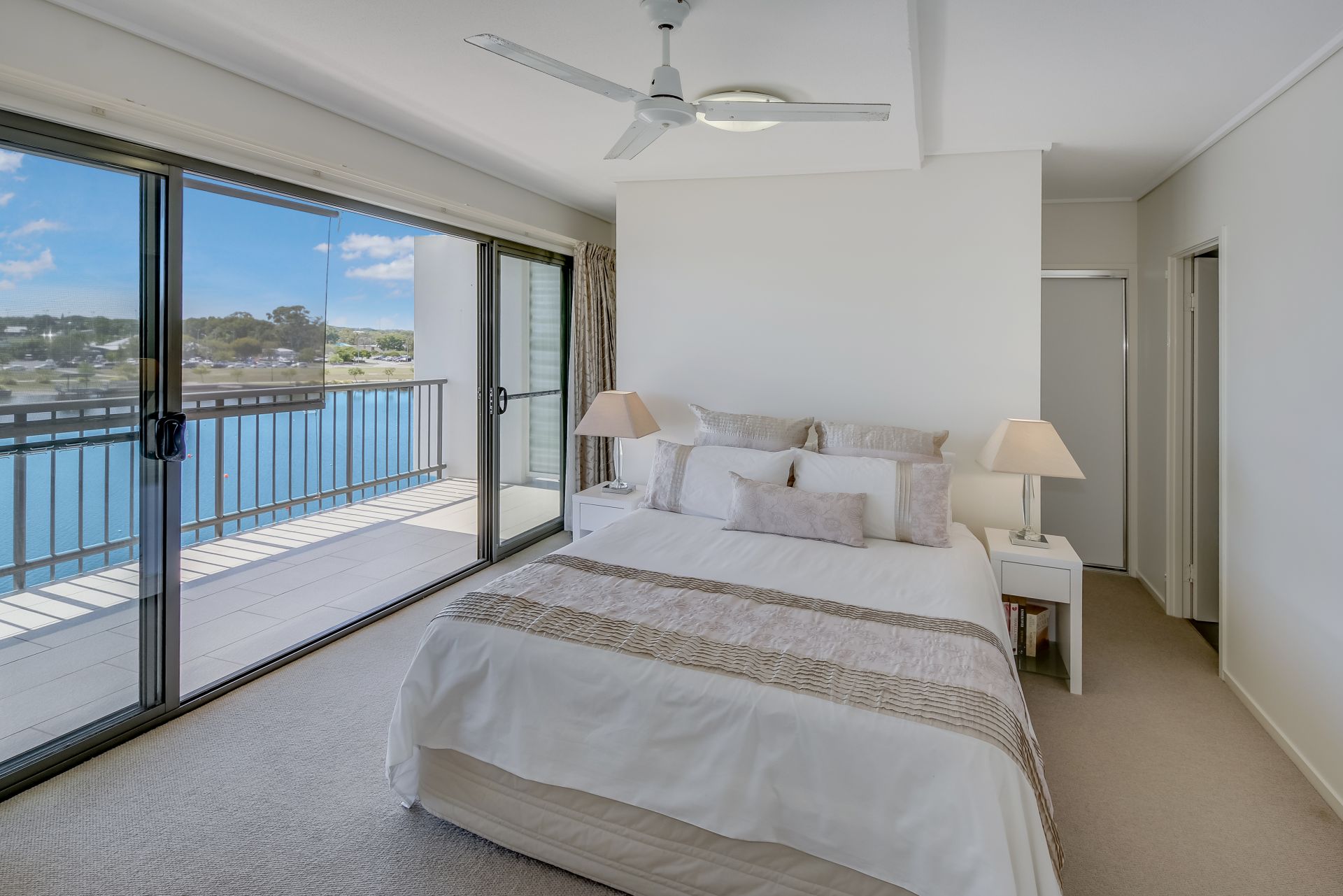 Located at the southern end of the complex with glorious views, cooling sea breezes – you will never tire of sitting out on the expansive balcony over a coffee or a chilled drink, watching the rowers do their daily workout on the Lake…and if you're up early, what about that spectacular sunrise!!