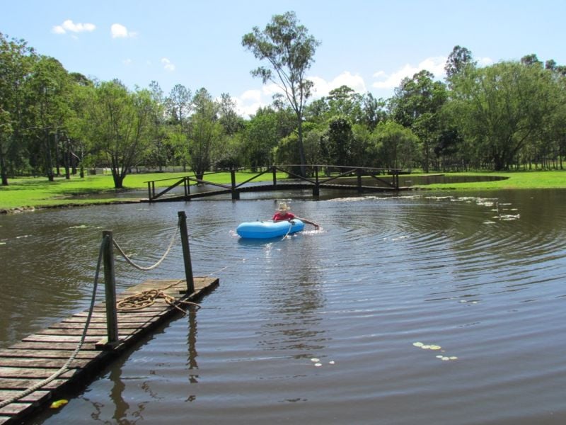 The gardens immediately surrounding the home are beautifully landscaped and well established with a mixture of colourful flowering shrubs, shady trees and grassy lawn. The remainder of the 14.2 acres is a blend of expansive lush grassy space (suitable for livestock including horses), a picturesque fresh water dam with its own bridge and jetty – a striking centrepiece, a stand of cabinet timber trees, plus fruit trees and manicured hedging.
