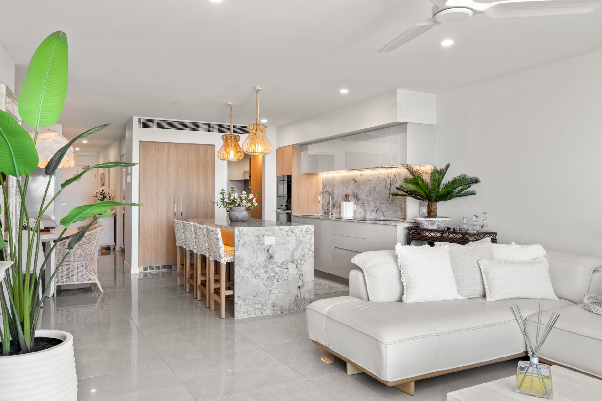 From the moment you step inside, the superior finishes immediately set this home apart. Expansive 750mm x 750mm tiles flow seamlessly throughout, enhancing the sense of space and continuity. Quality timber ceiling fans add warmth and style, complementing the light-filled interiors and cohesive design.