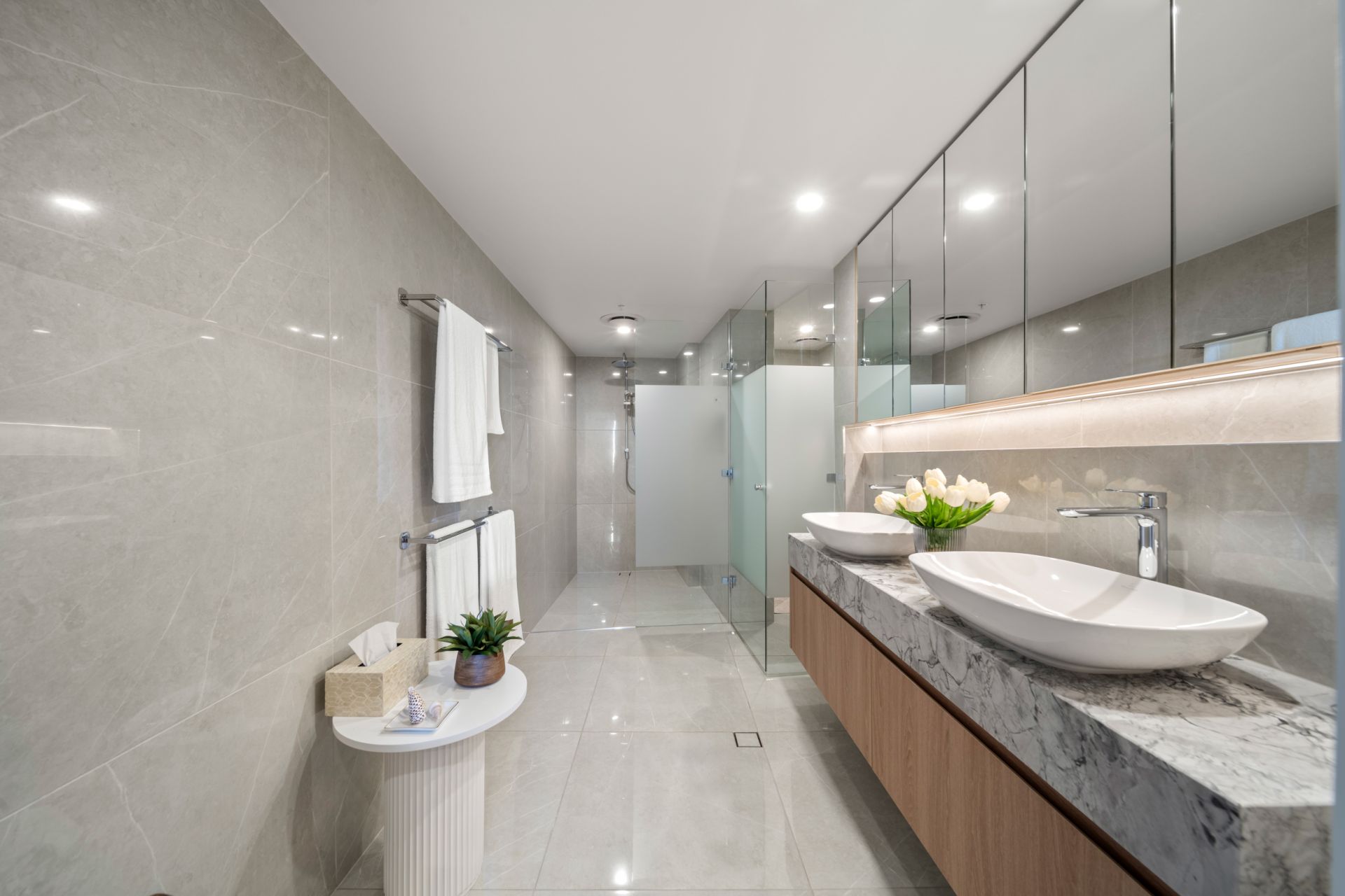 The generous open-plan living and dining area transitions effortlessly to a spacious balcony, delivering the perfect environment for entertaining or relaxing in privacy. Every element has been thoughtfully considered to combine functionality with refined living.