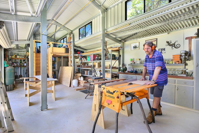 Over two storeys, the home is complete with six bedrooms, three bathrooms, separate living areas, premium kitchen with butler's pantry and food pantry, expansive covered timber deck, wine cellar, triple car accommodation, plus huge work-shed with mezzanine floor.