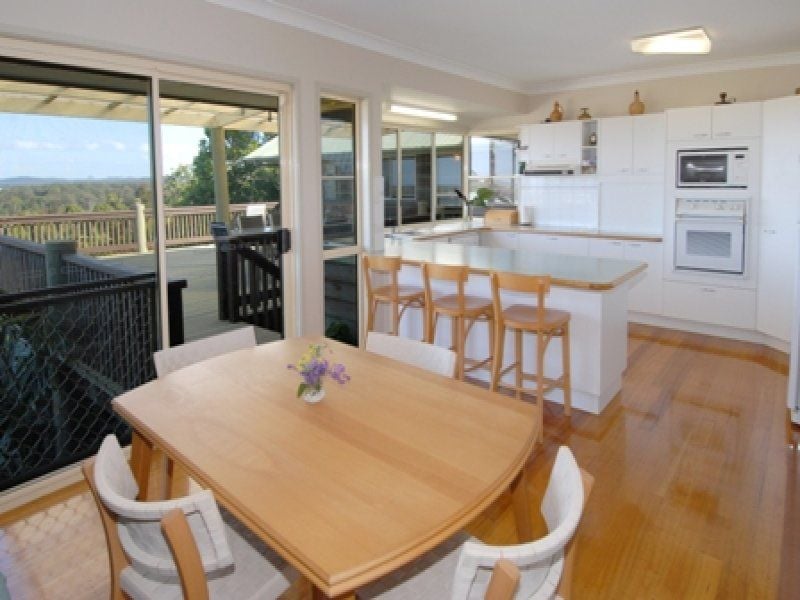 A separate air-conditioned family room which leads out to the deck is overlooked by the well-appointed kitchen. With plenty of cupboards and ample bench space, the kitchen also enjoys the stunning hinterland and coastal views which are showcased on the timber alfresco entertaining deck.
