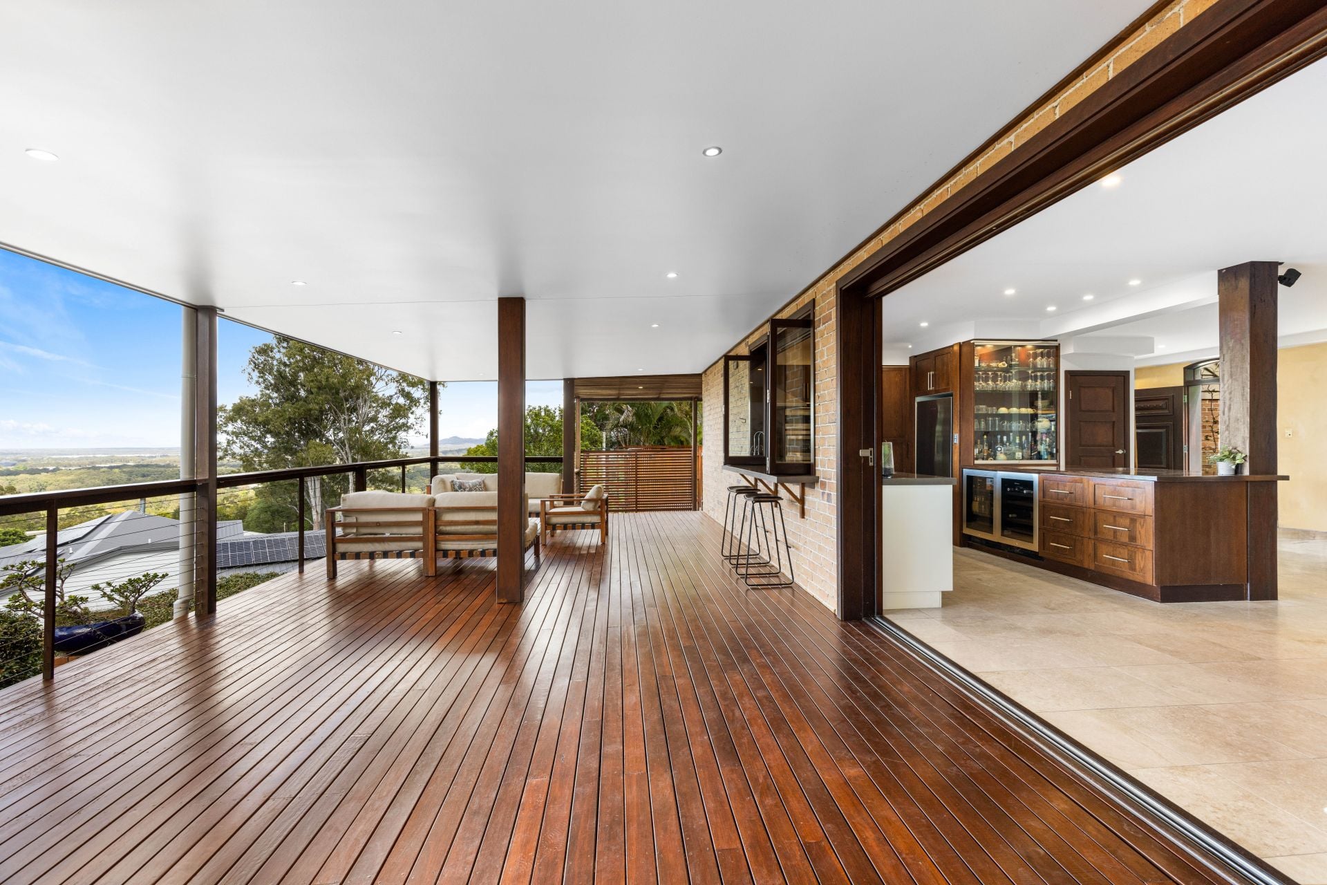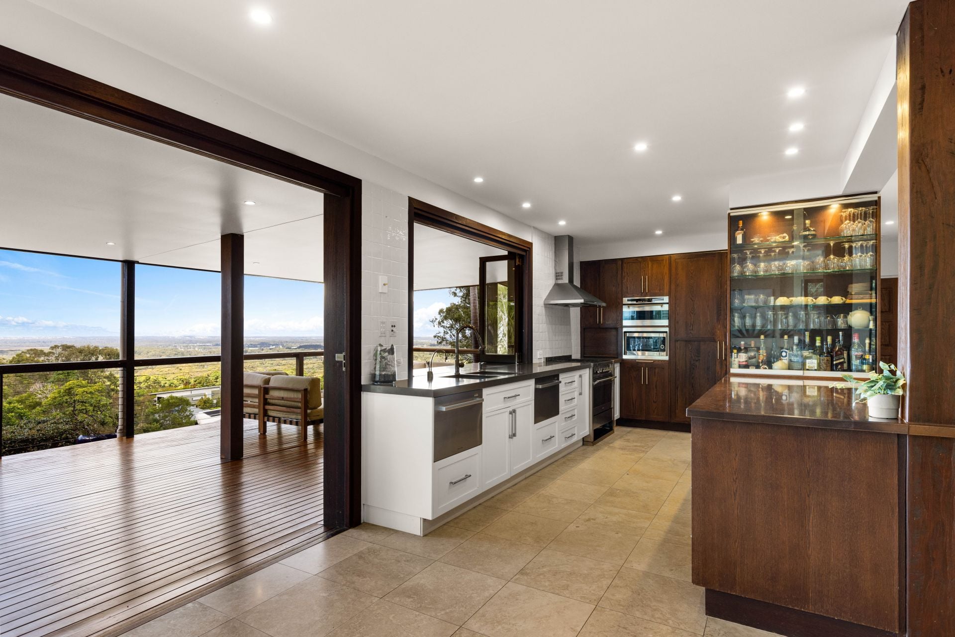 The home is an entertainer's dream. Whether relaxing in the living spaces or preparing a meal in the designer kitchen with SMEG appliances and two Vintec wine fridges, the ever-present ocean views provide a stunning backdrop. Quality Travertine tiles and timber floors lend an air of sophistication to the living and bathroom areas with beautiful hardwood timber in the bedrooms. The house is thoughtfully designed for cooling, thanks to double/cavity brick construction.
