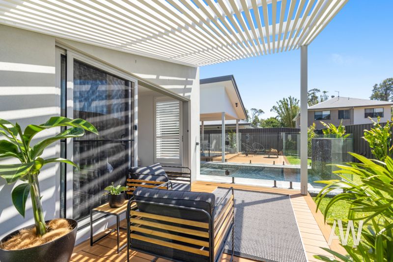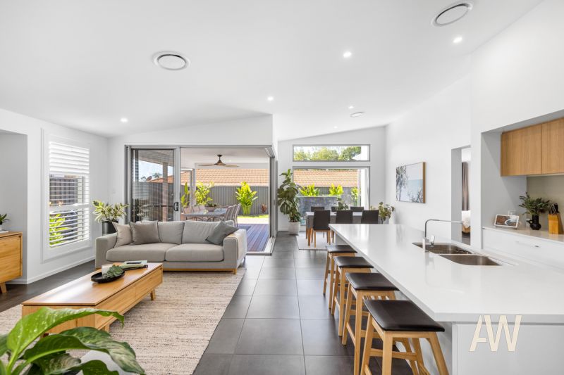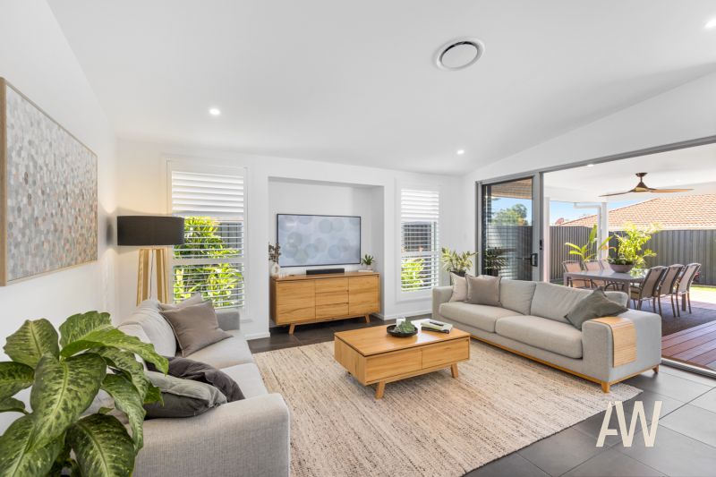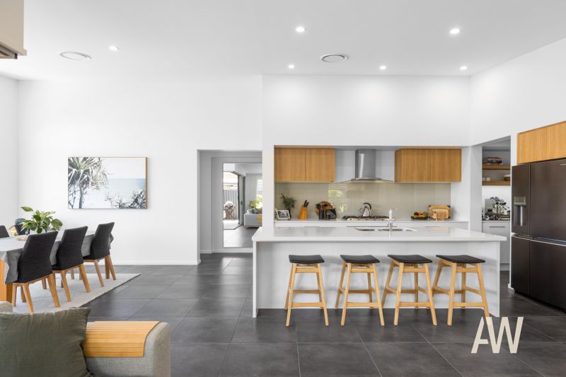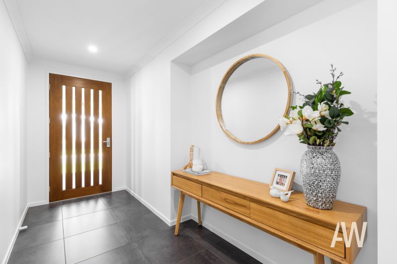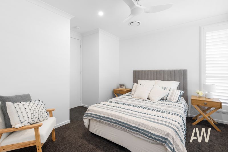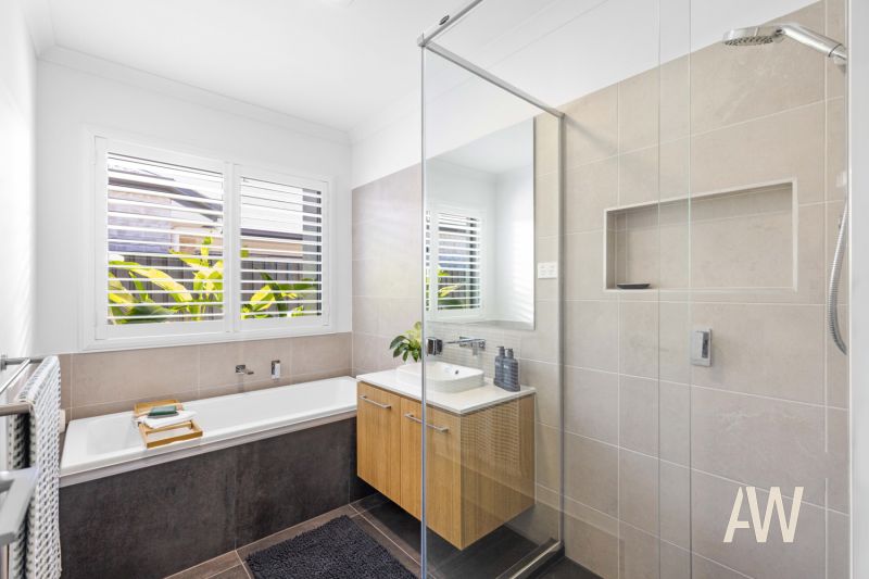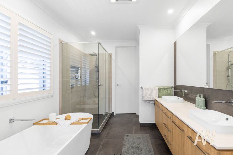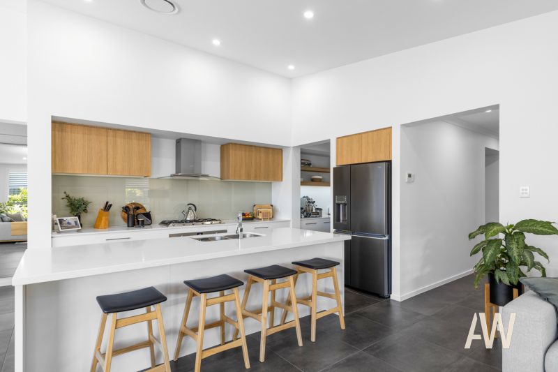 Elegant interiors and quality fixtures/fittings throughout create a stunning and lasting first impression. Features include ducted air-conditioning, DC ceiling fans, plantation shutters, private pergola off master bedroom, stone benches, full sized bathtub in both bathrooms, dual vanities in ensuite, stone benches, stainless steel appliances, gas cooktop, soft close cabinetry, 3.4-metre high ceilings in main living, smart controlled lighting, lock-up garden shed, 3-phase power to garage (ready for Tesla fast charger), and gated side access.