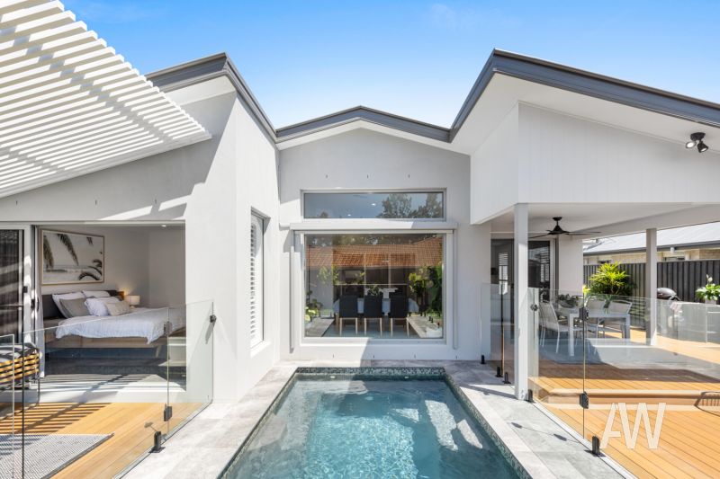 Across a light-filled single level, the home comprises formal entry, four bedrooms (three with walk-in robes), two bathrooms, two separate living areas, well-appointed central kitchen with butler's pantry, north-east facing alfresco entertaining overlooking central sundrenched inground pool with water feature and bench seat, separate laundry, and double lock up garage on a flat, easy-care 600m2 block with a fenced backyard.