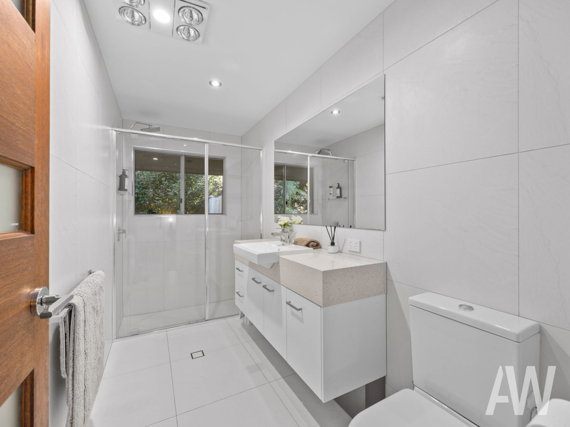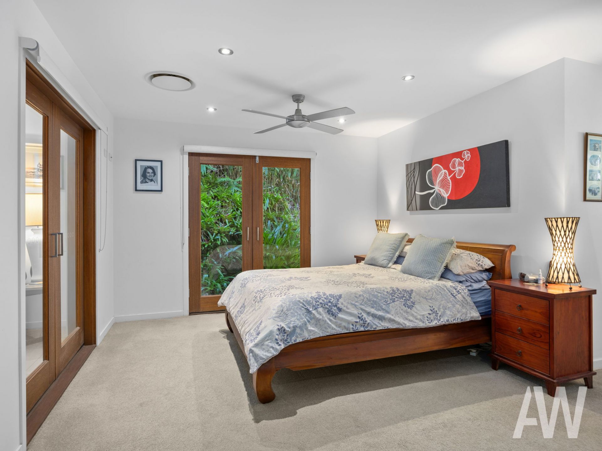 Entertain in style with a state-of-the-art kitchen & butlers' pantry equipped with twin Fisher & Paykel drawer dishwashers, a 900mm Smeg gas burner stove top and electric oven, and impressive 5-metre-long double island stone waterfall bench tops. Generous space for two fridges. The solid timber bi-folds and timber louvers open to merge indoor living with the outdoors, where multiple patios provide a selection of spaces to relax and enjoy the verdant surroundings.