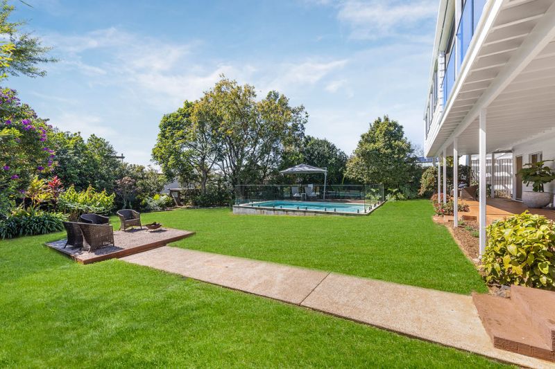 Outdoors, the private grounds are immaculately presented, framed by established gardens with sunlit lawn, firepit area, and ample room to extend if desired.