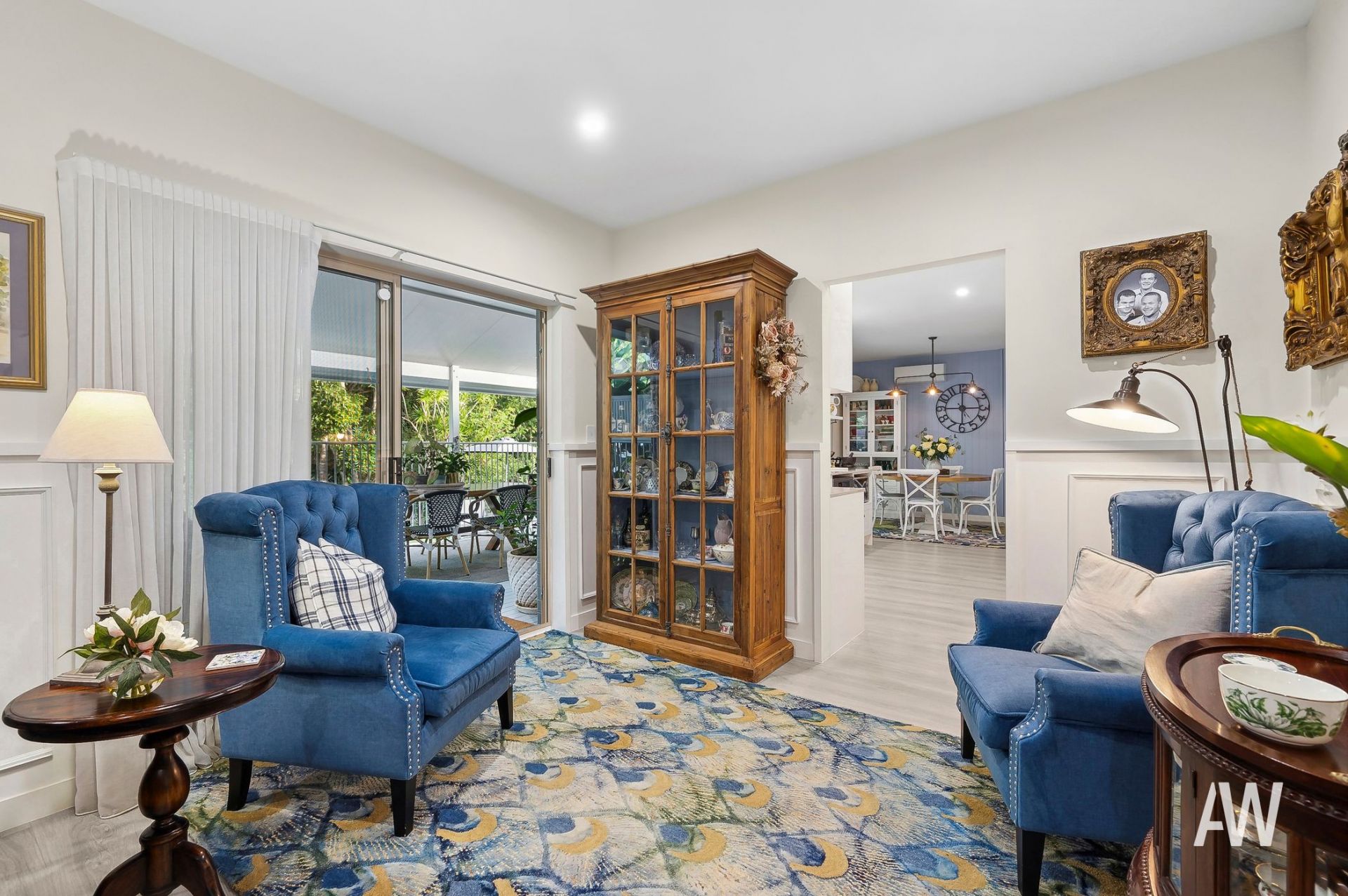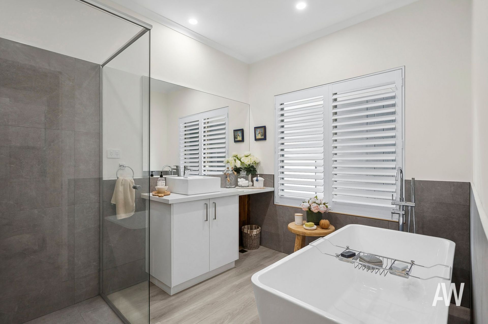 High ceilings, hybrid flooring and cashmere carpets, quality window furnishings, 3 x split system air-conditioners, ceiling fans, bespoke cabinetry, stone benches, dual vanities in ensuite, separate bathtub and shower in main bathroom, high quality security doors and flyscreens, solar power with battery storage, elevated poolside pavilion, and garden shed; are among the home's suite of features.