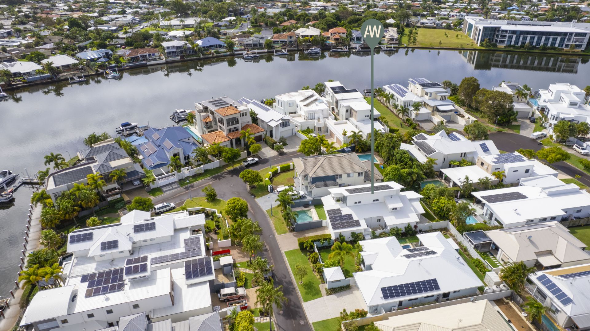 Amber Werchon Property presents to the market, 16 Cayman Place, Parrearra; this ultra-stylish family home located in a premium waterfront neighbourhood, showcasing water glimpses from upper level, and boasting a prized northerly aspect to maximise the delights of alfresco entertaining.