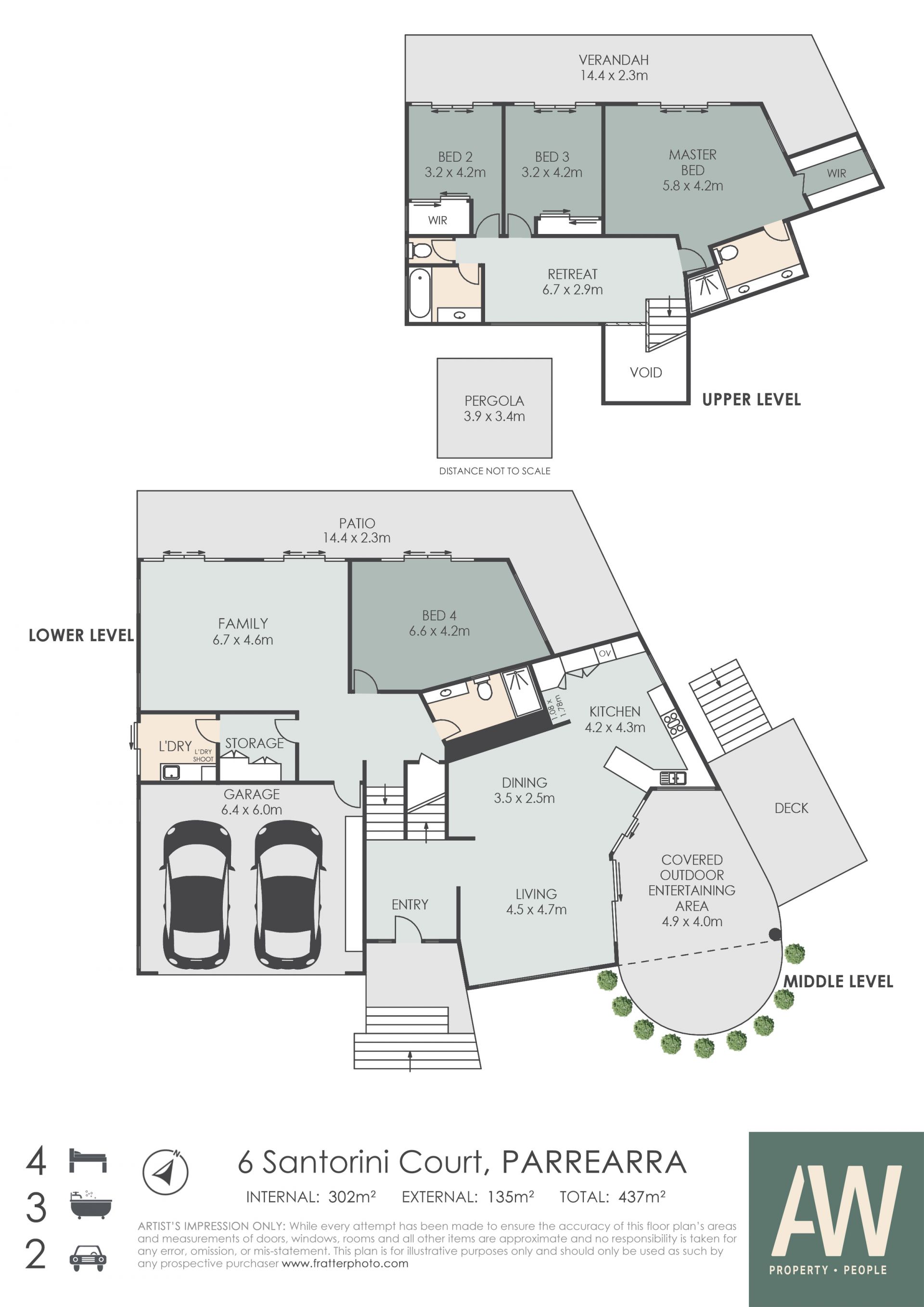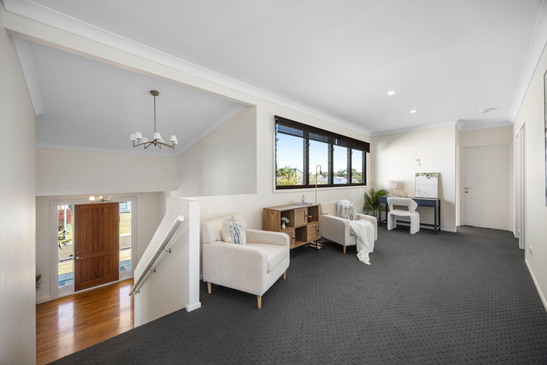 A grand formal entry welcomes you into this tri-level home comprising four airconditioned bedrooms, three bathrooms, office/retreat, separate living areas, well-appointed kitchen, covered entertaining terrace, open air deck, north facing upper verandah (with water glimpses) and ground floor patio, separate laundry, storeroom, and double lock up garage with lots of storage plus gated side access on a pristine 705m2 block.