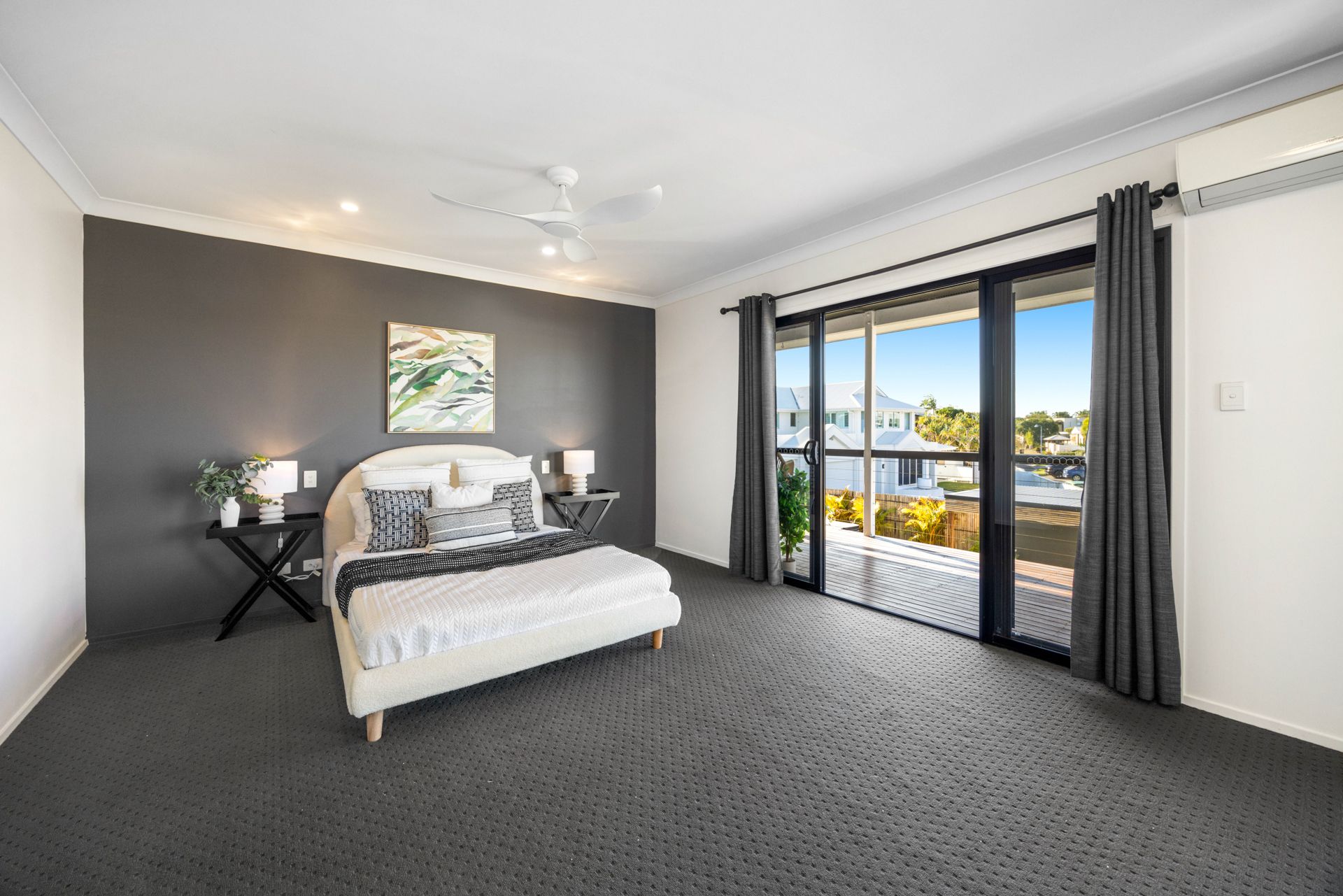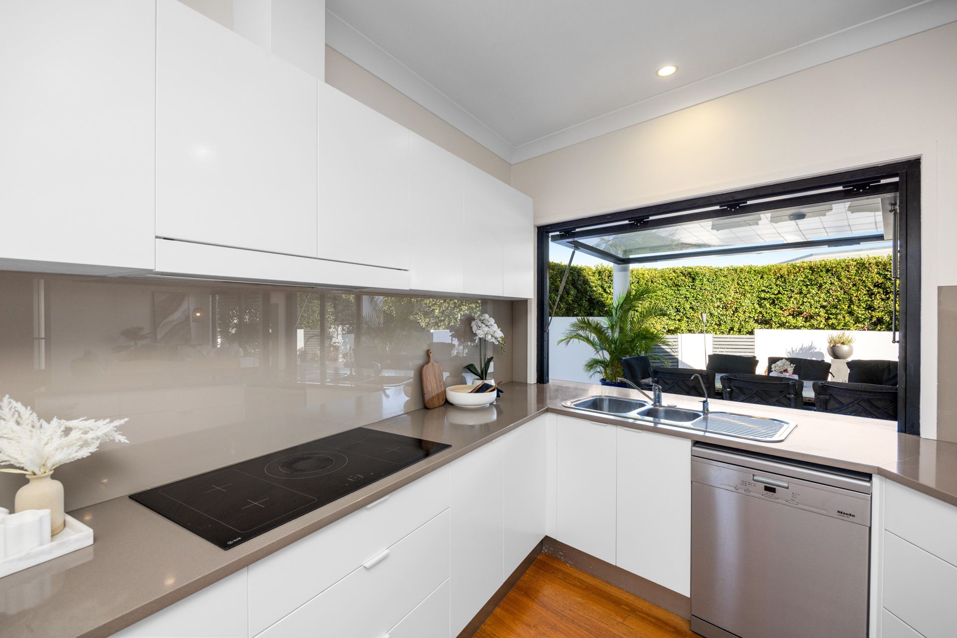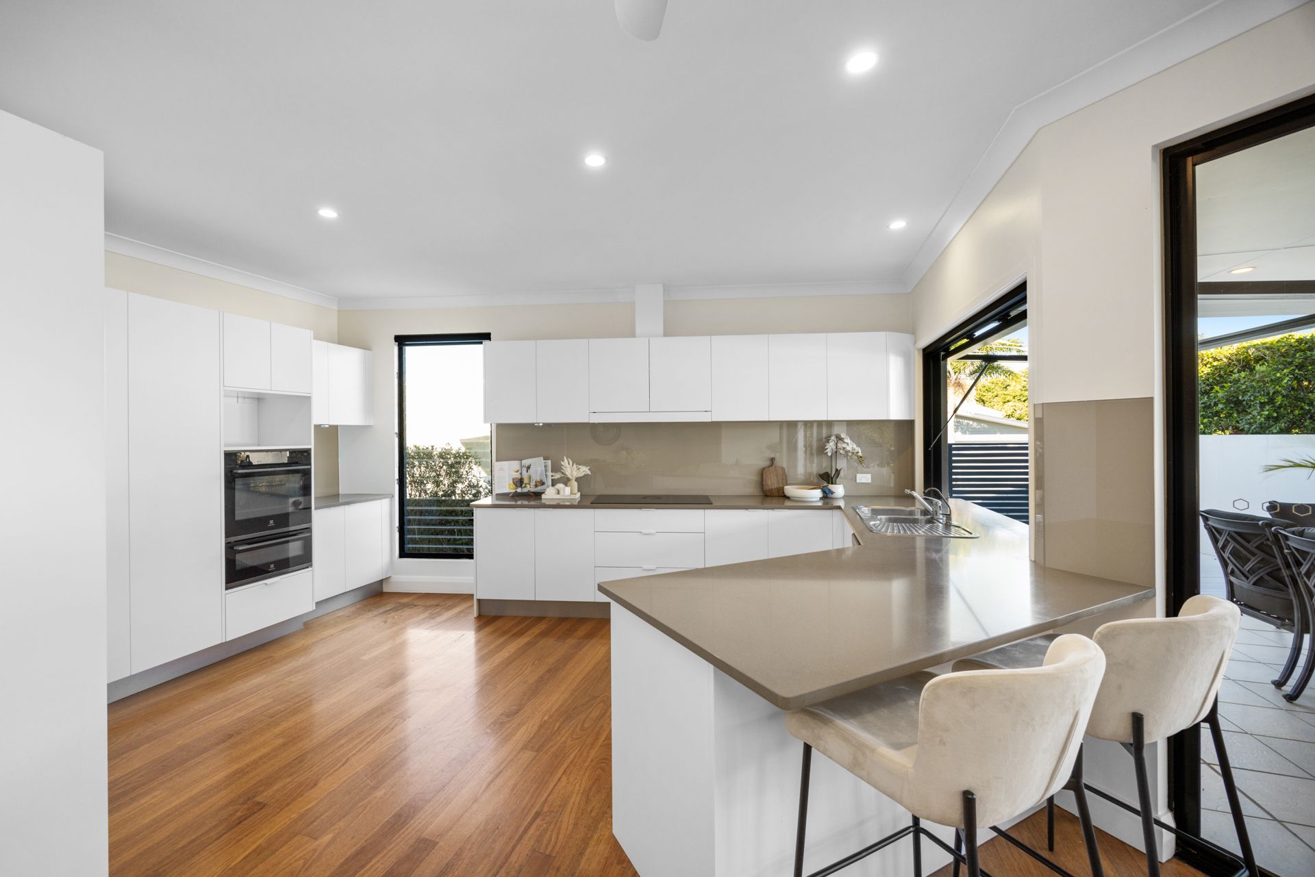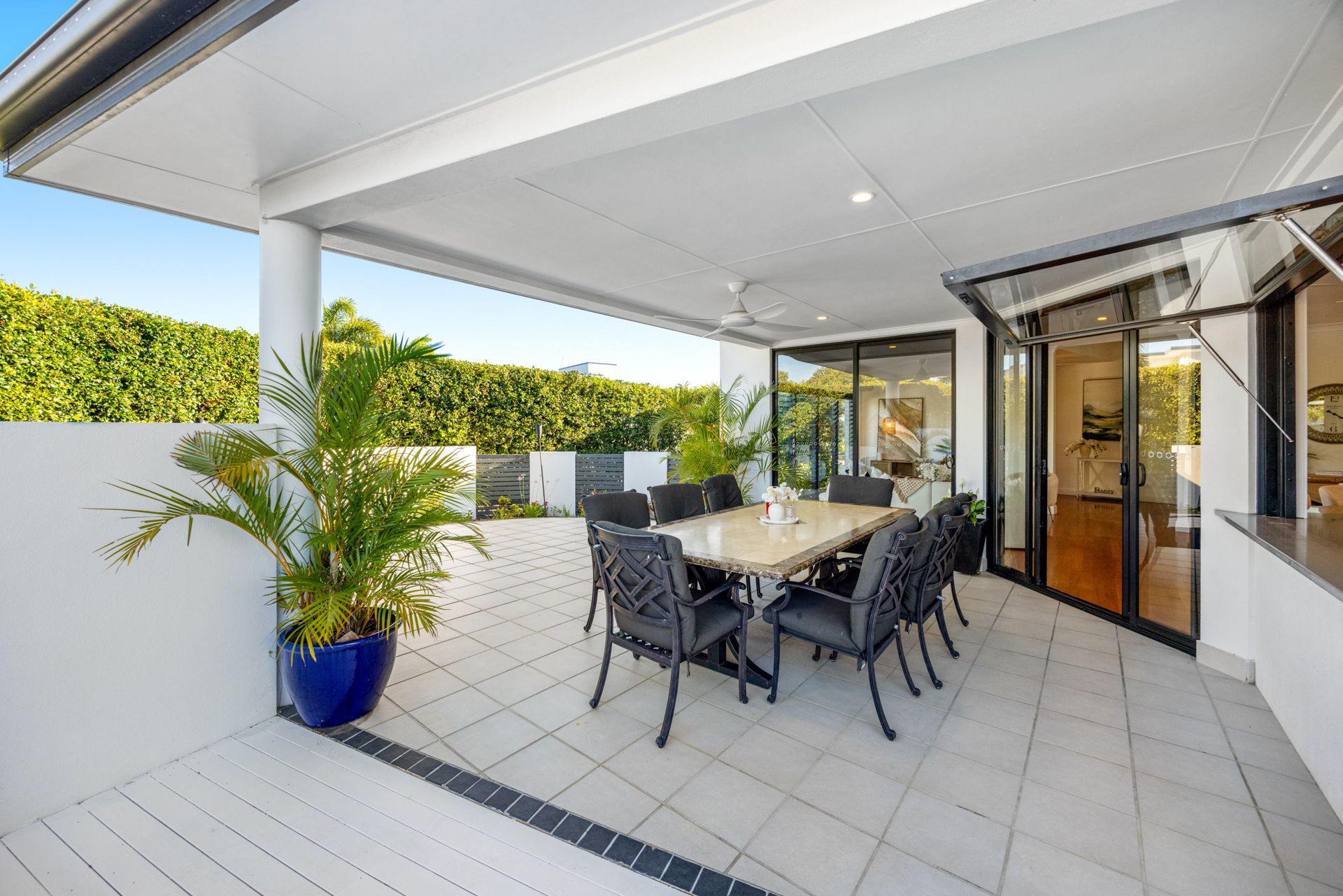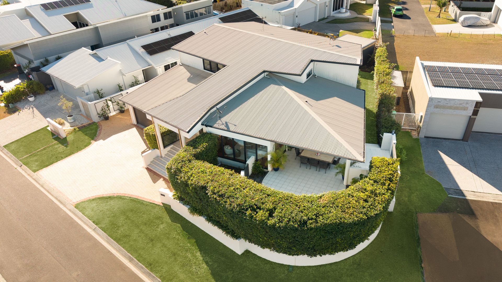 Amber Werchon Property presents to the market, 6 Santorini Court, Kawana Island; this elegant architect designed split level home on a fully fenced corner block in a premium waterfront cul-de-sac, offers family-friendly Island living with a large north facing backyard, expansive alfresco entertaining space, and generous living zones throughout.