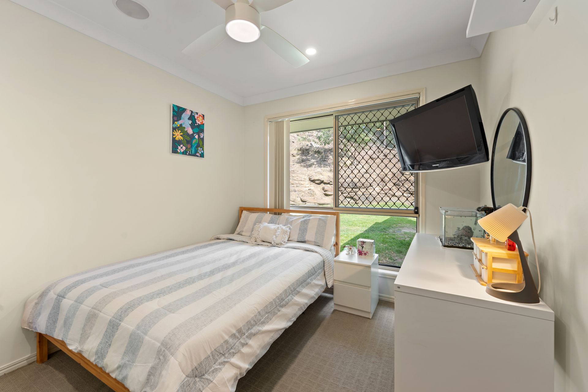 Outdoors, the fully fenced backyard offers ample space for children and pets to play, with scope to enhance, extend, or add value over time. Sustainability and security are well catered for with a 5.5kW solar system and an integrated security system already in place.