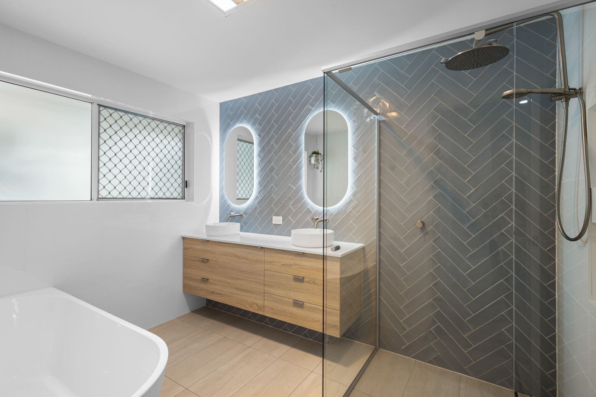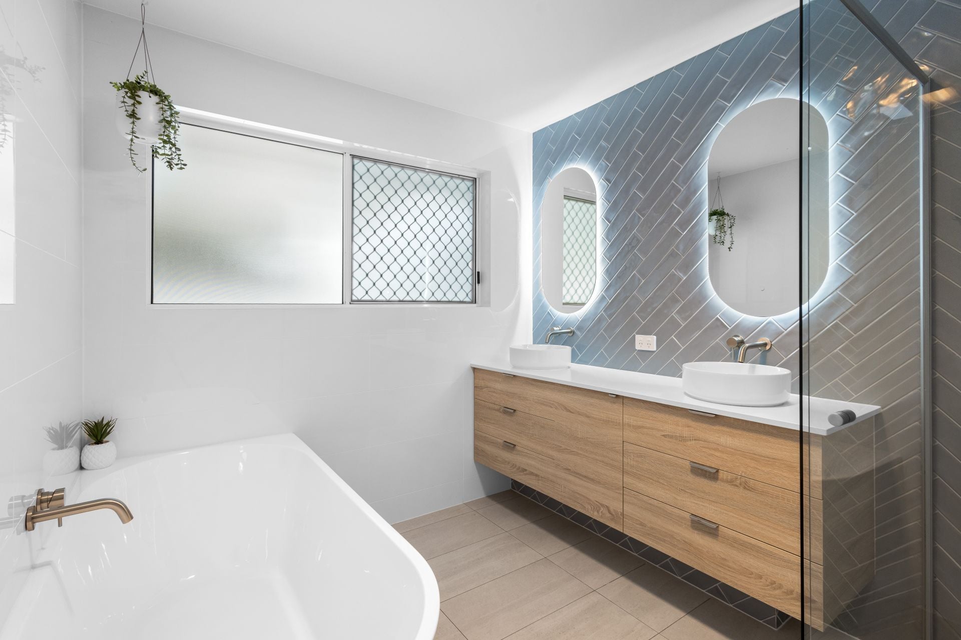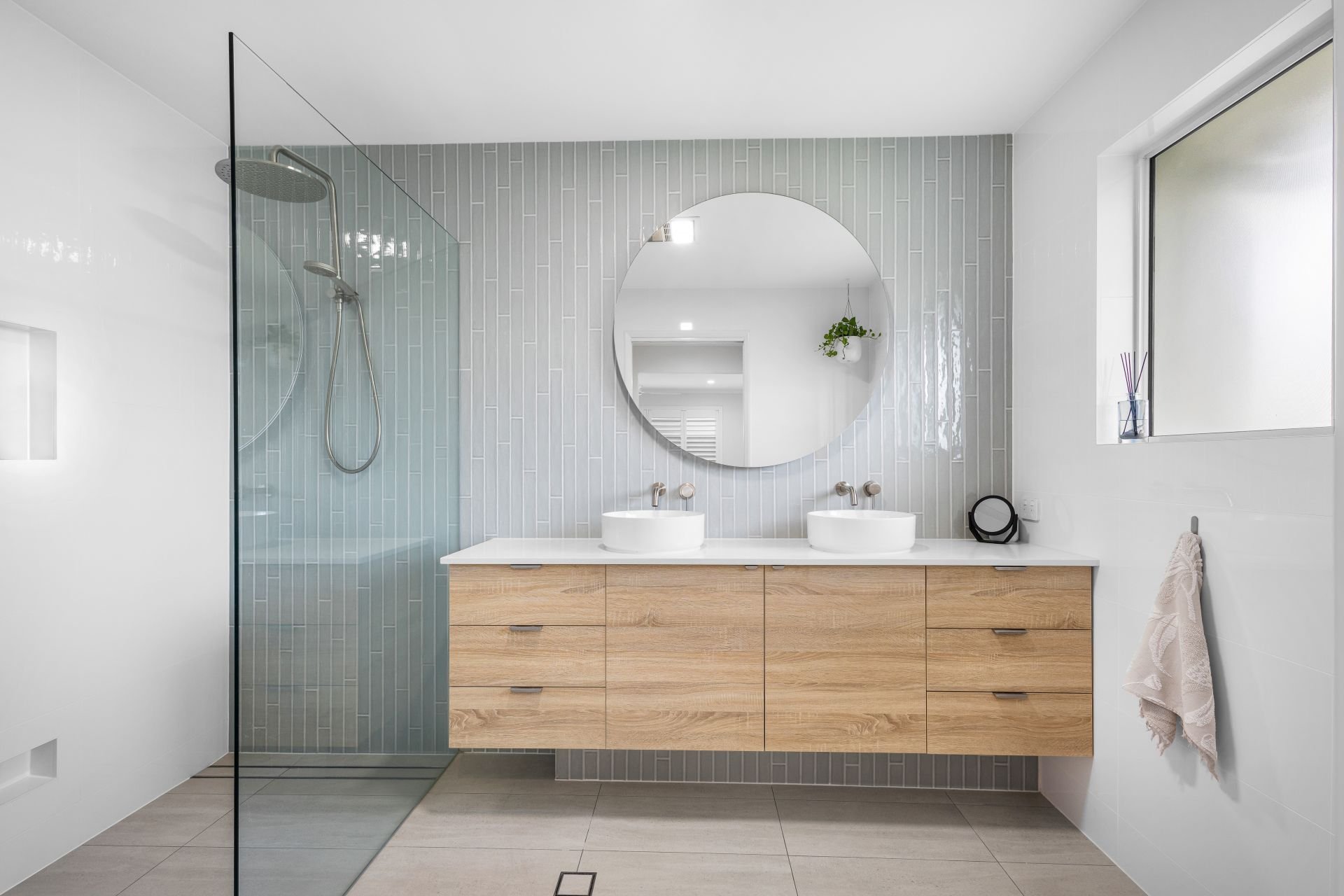 Accommodation has been carefully planned to provide privacy and comfort. The master suite is a true retreat, featuring a well-designed ensuite with quality finishes, including stone benchtops, modern fixtures and a clean, timeless aesthetic. The remaining bedrooms are generously proportioned and serviced by a stylish family bathroom, complete with contemporary tiling, stone benchtops and a layout that easily caters to family living or guests. Both bathrooms have been finished with a focus on functionality and understated luxury - neutral tones, quality materials and a sense of calm that elevates daily routines.