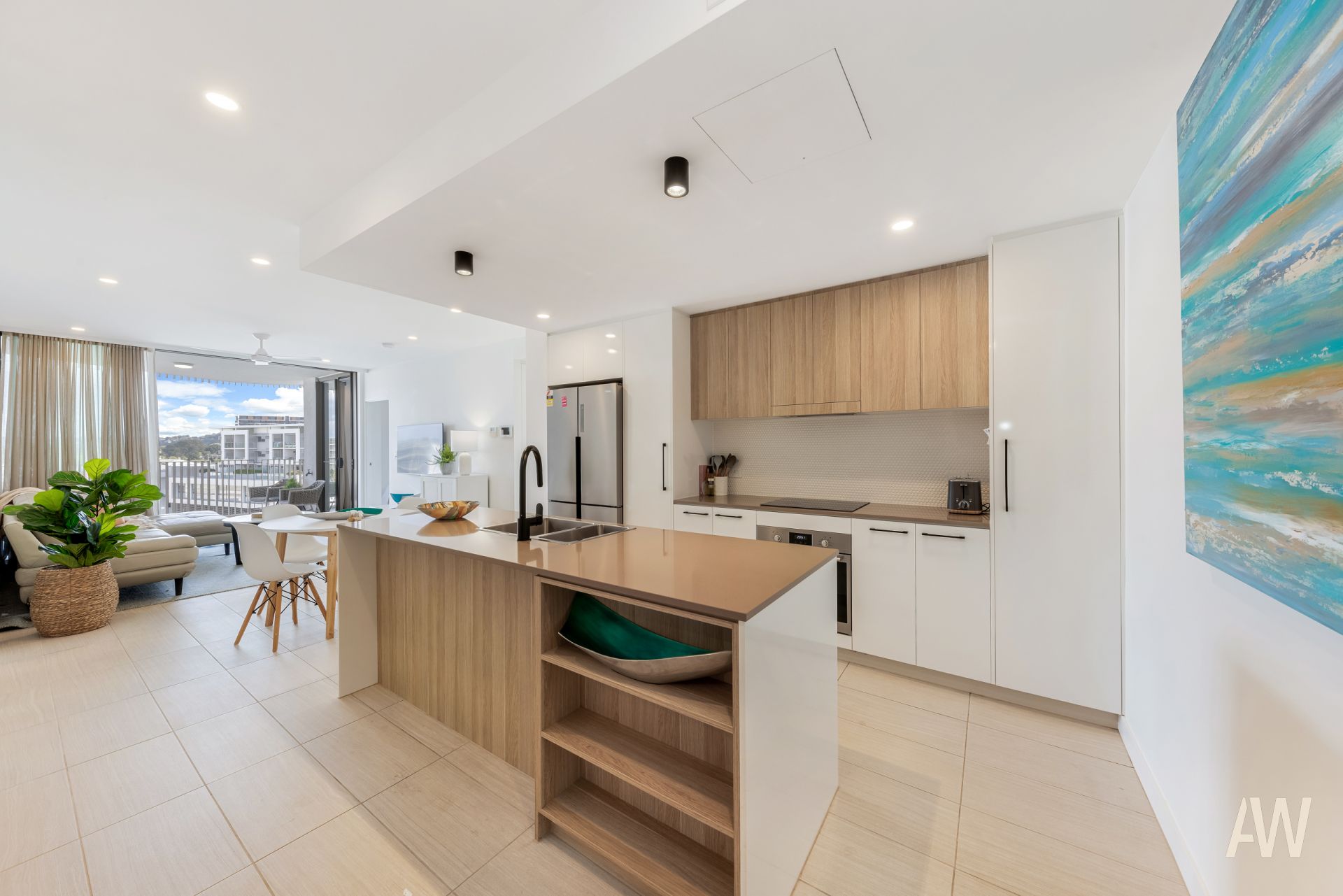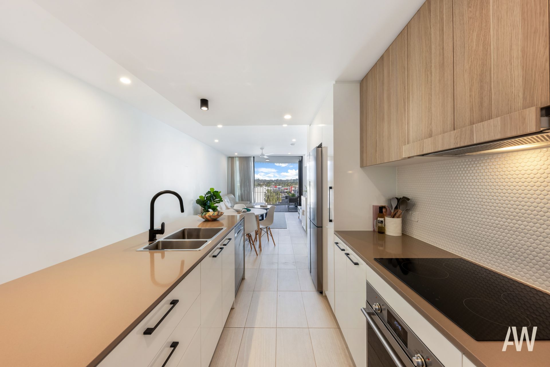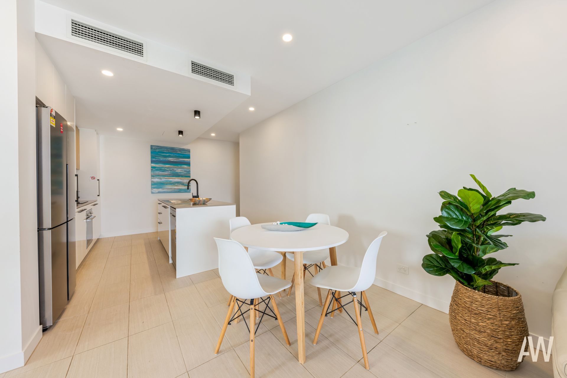 The apartment has been designed with style and ease in mind. The open-plan kitchen, dining, and living area maximize space and simplify entertaining. This unit can be sold fully furnished, allowing you to immediately have an income-producing investment. The kitchen is equipped with high-end European appliances, a stone benchtop, and a Miele dishwasher. Air-conditioning and ceiling fans provide year-round comfort. The master bedroom includes an ensuite and access to the balcony, while the second bedroom features a built-in robe and is positioned close to the main bathroom and the concealed European laundry.