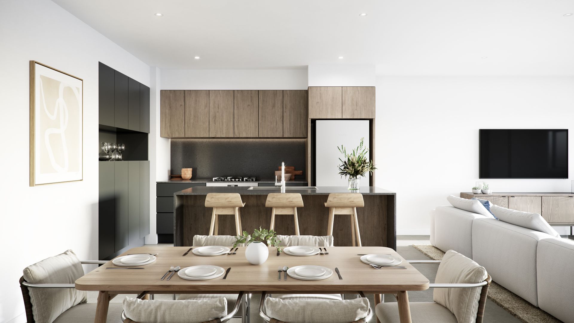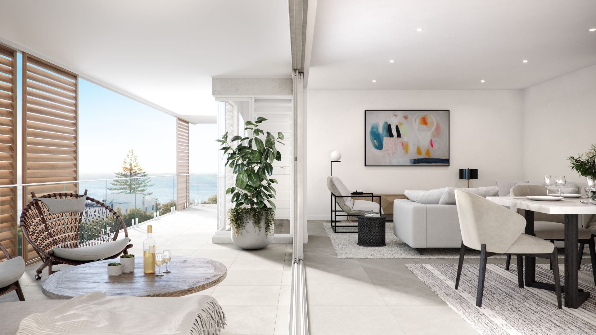 Every one of these architect designed units boasts impeccable finishes, open plan living and a contemporary coastal interior. Stacking doors lead to the covered balcony with accent rattan screens, flooding the home with natural light and allowing cool ocean breezes to flow through.