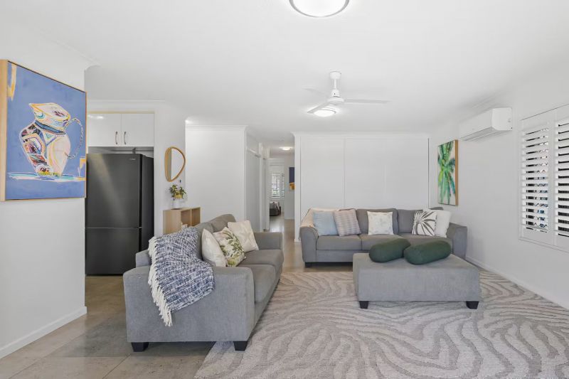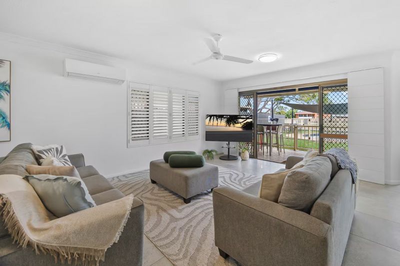 Plantation-style shutters enhance the home's relaxed coastal feel, while cool, comfortable interiors make this an inviting retreat year-round. From the living area, step straight outside to your private waterfront entertaining zone – perfect for morning coffees, sunset drinks or hosting friends and family by the water.
