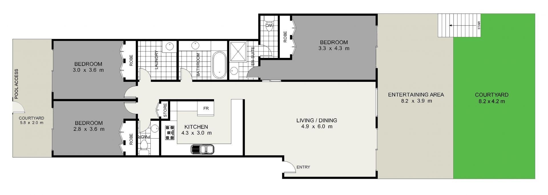 One of 9 in this well kept and maintained complex, the apartment is complete with three bedrooms, two bathrooms, open plan living and dining, generous sized kitchen, full sized laundry, balcony and a large enclosed garage space in the basement; there is also communal pool for residents to enjoy with direct access from the rear courtyard!