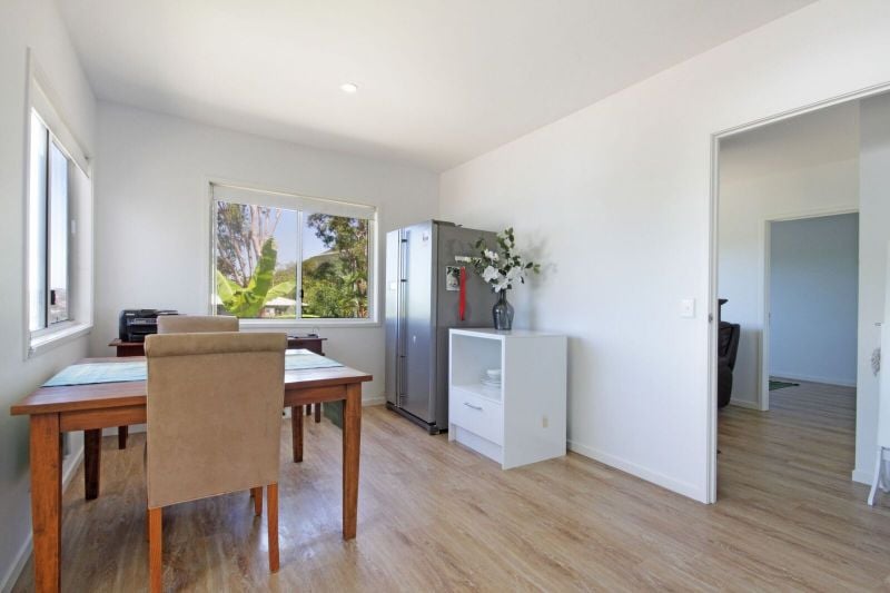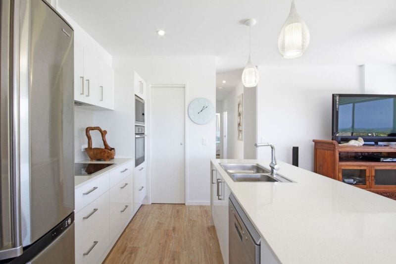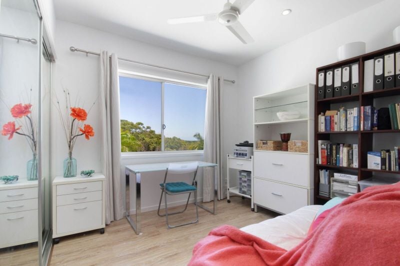 This custom built and designed home on a landscaped corner block showcasing ocean and mountain views offers flexible living options over two levels. There is the potential to create a granny flat which could be rented out to generate income; or a home office/practice. Less than a year old, it is pristine, presenting all shiny and new!