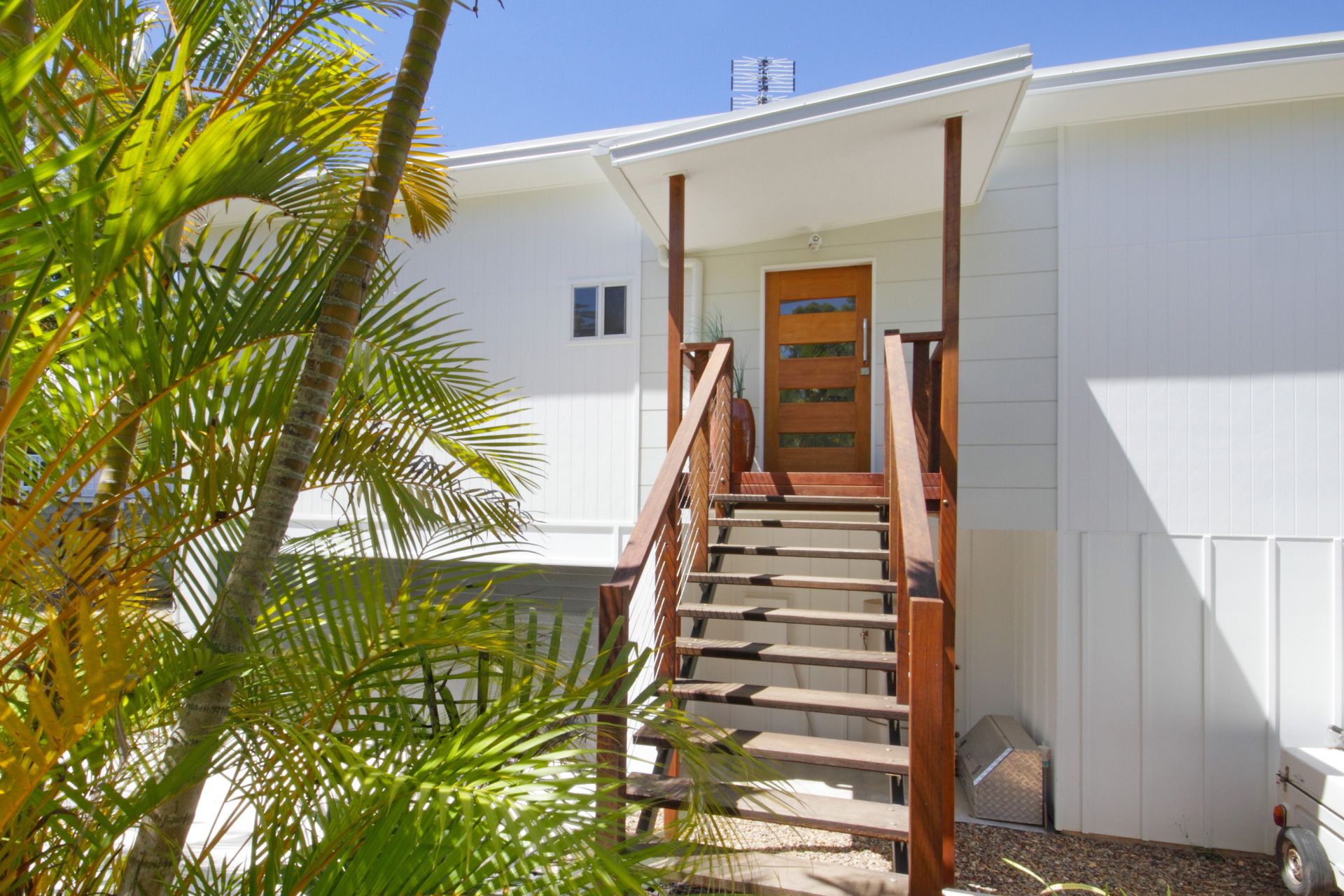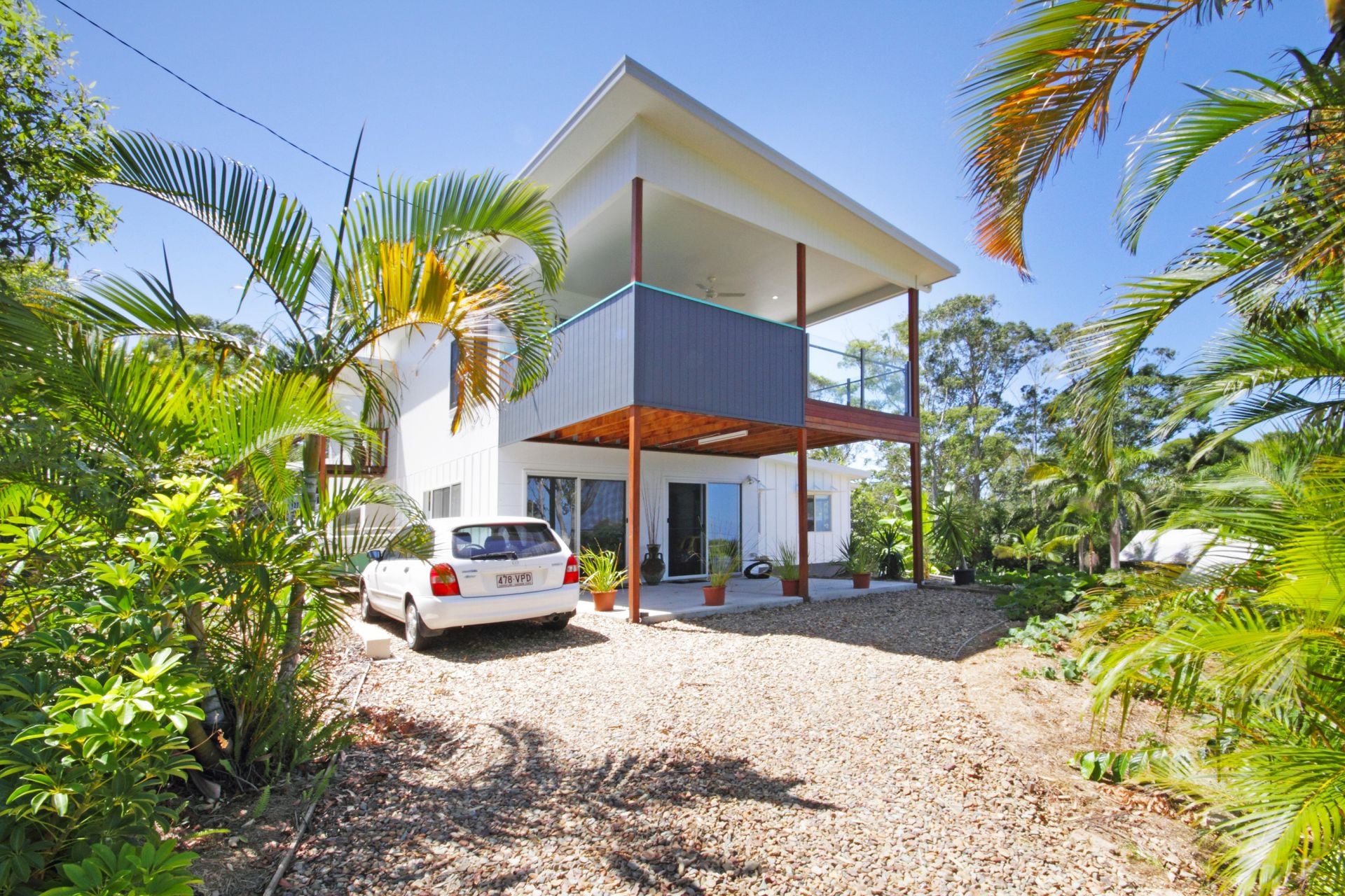 Features include: premium fixtures and fittings throughout, floating timber floors, ceiling fans, stainless steel appliances, stone benches, 2700mm high ceilings, generous storage, walk-in robe in master bedroom, and lush, leafy tropical gardens.