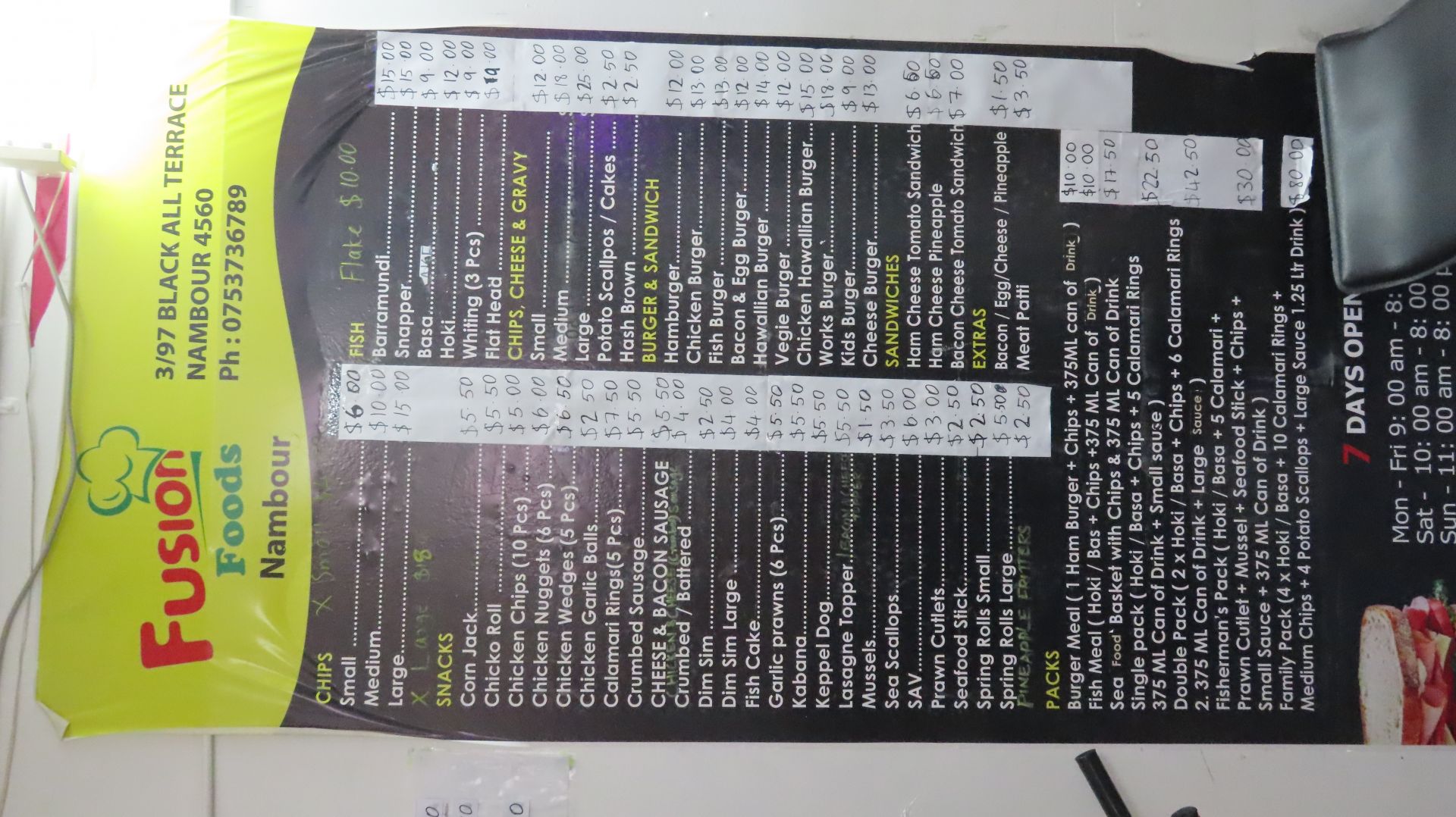 'Fusion Foods' provides a selection of Convenience Store lines in addition to Fish N Chips, Burgers, other Takeaway selections, Sandwiches and Coffee. Something for everyone, (No longer Indian takeaways as signed) The business is well known and established. Current operating hours are 9:00am to 8:00pm weekdays, 10:00am to 8:00pm Saturday and 11:00am to 8:00pm Sunday. Staff comprise husband and wife plus help from two daughters as required. (One person weekday mornings, two later in the day and three Friday and weekend evenings).