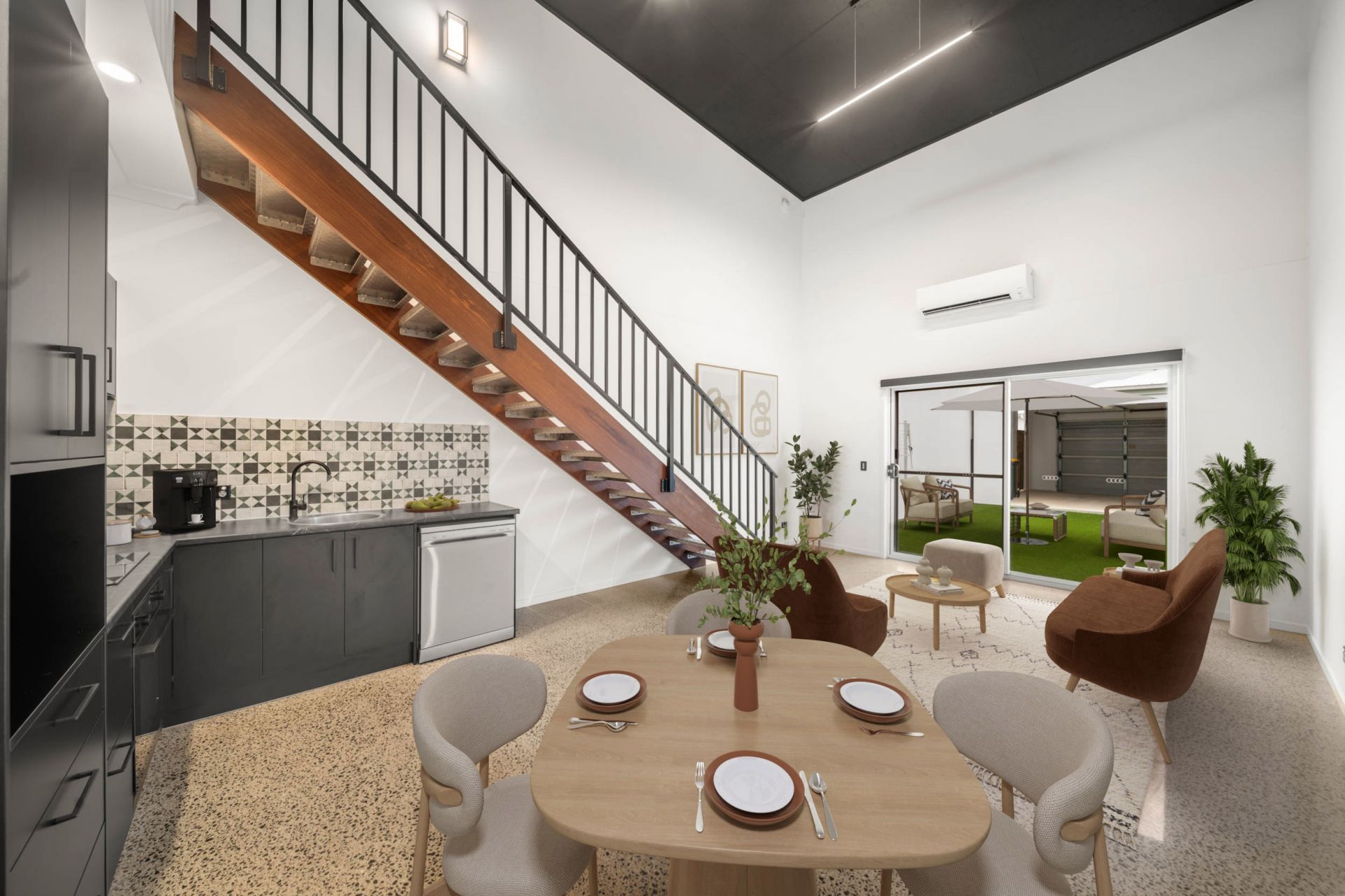 The heart of the home opens into a bright, open-plan living and kitchen space filled with natural light. The modern kitchen offers ample bench space, generous storage, and quality appliances, making it both functional and stylish. The living area flows seamlessly to the private outdoor courtyard, complete with astro turf - perfect for relaxed entertaining and easy upkeep.
