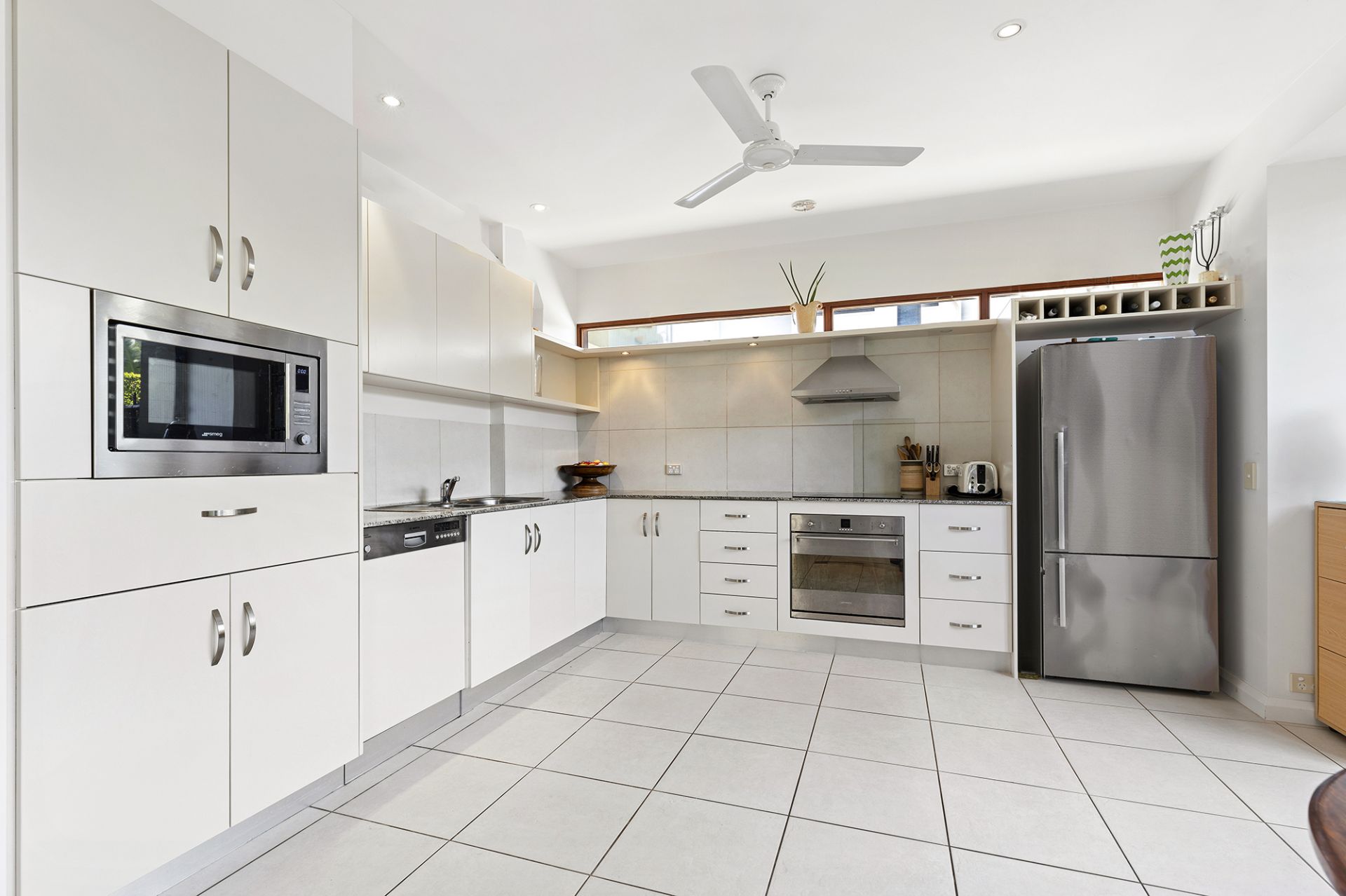 Timber framed bi-fold doors to alfresco spaces and balconies, ducted reverse cycle air-conditioning, stone benches in kitchen, integrated microwave and dishwasher, soaring ceiling and split system air-conditioning unit in master bedroom, security gate, intercom, and tasteful décor throughout – are some of the features enhance value, appeal, and liveability.