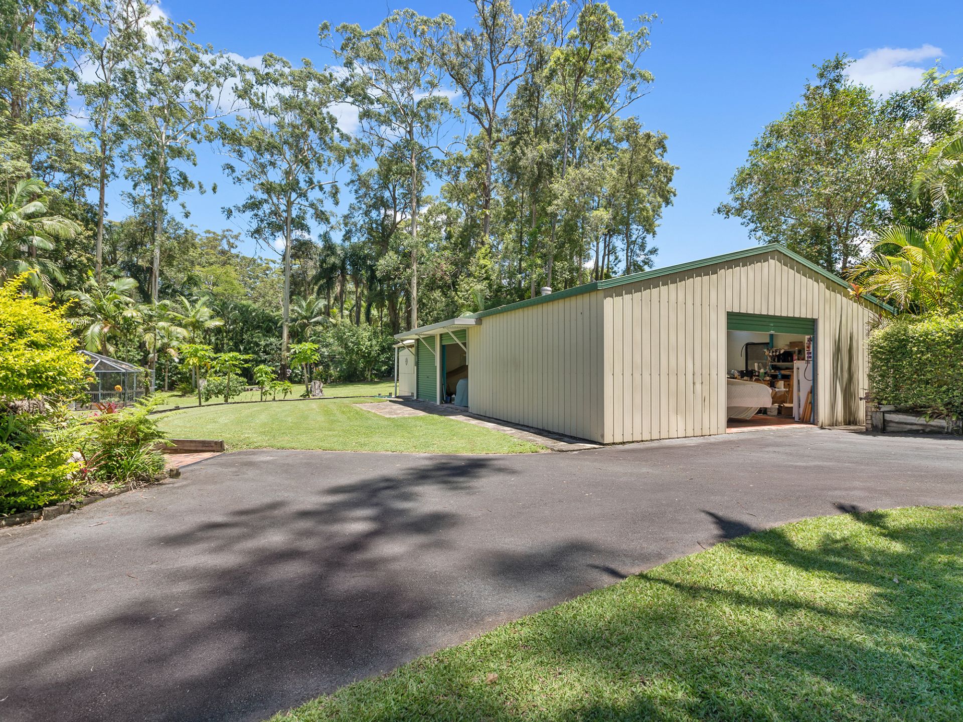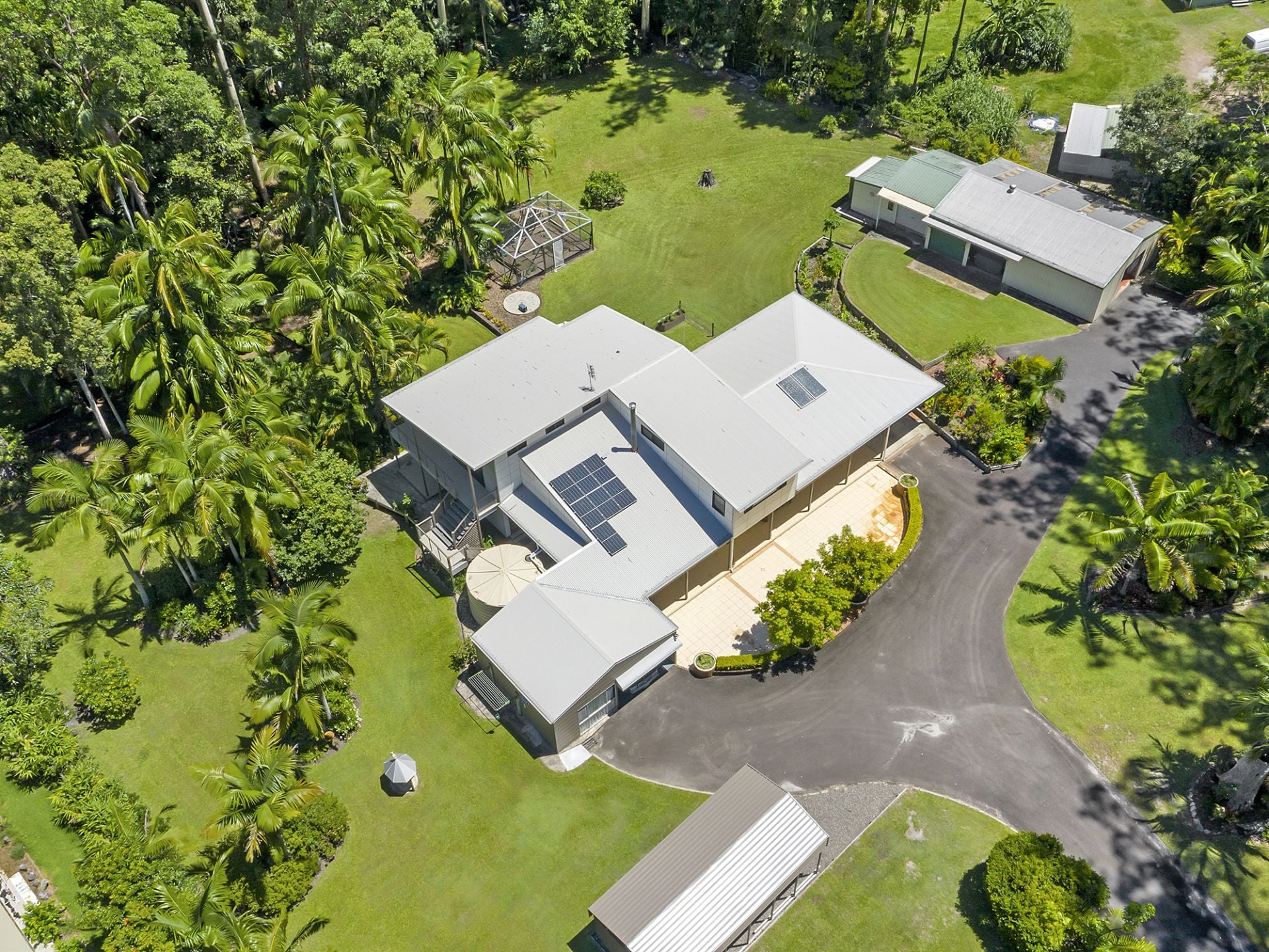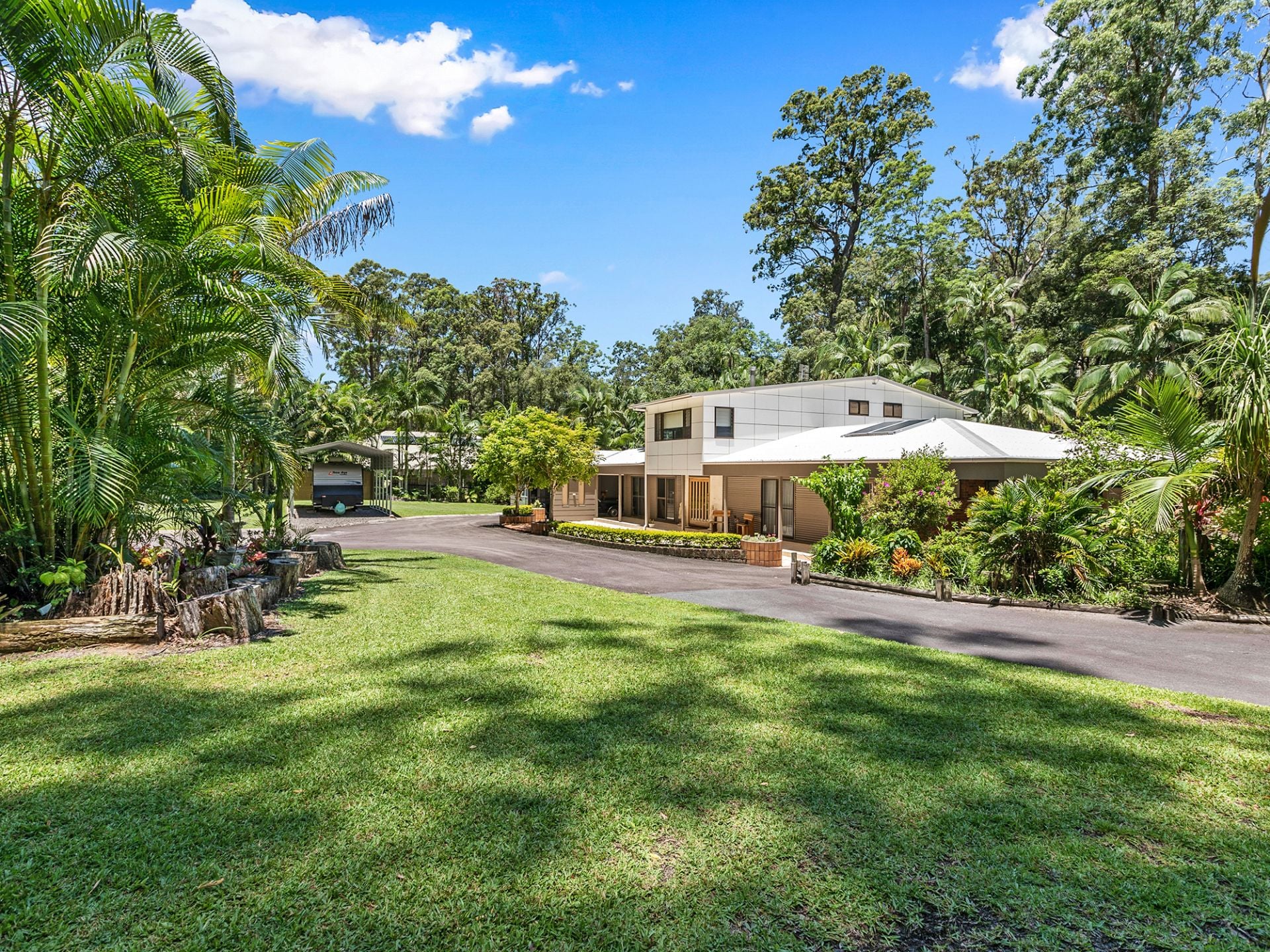 Surrounded by quality homes, this property features 5 bedrooms, 3 bathrooms plus powder room, 2 carports, man shed accommodating 6 vehicles, established trees, solar panels, greenhouse, and a biocycle tank for sewerage, on over 2 acres of land, nestled amongst lush rainforest.
