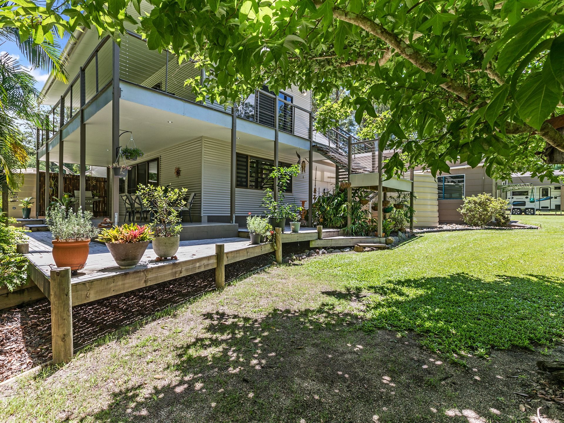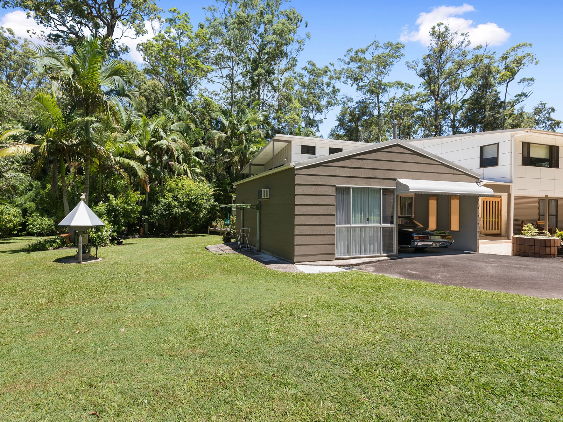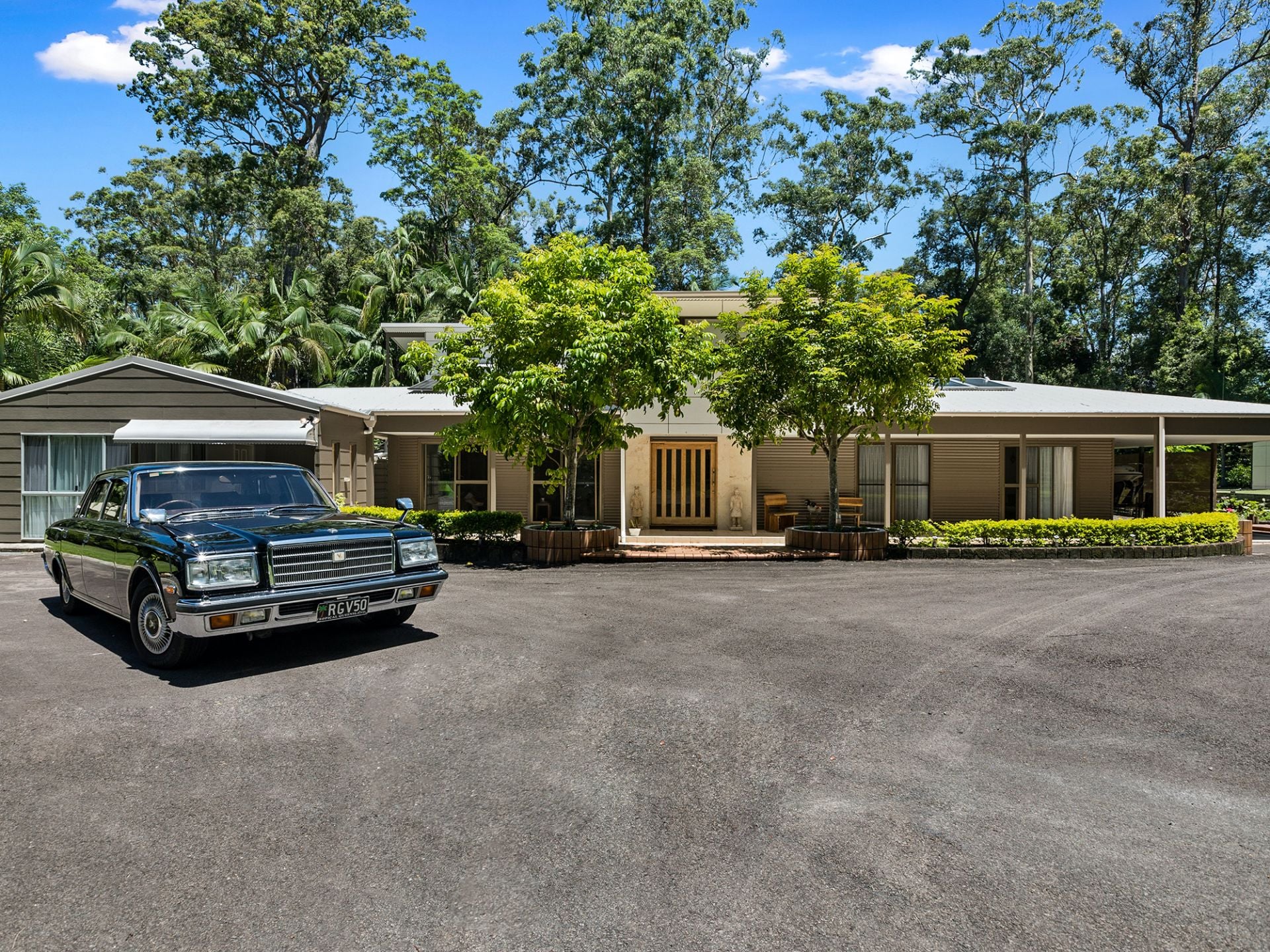 Surrounded by quality homes, this property features 5 bedrooms, 3 bathrooms plus powder room, 2 carports, man shed accommodating 6 vehicles, established trees, solar panels, greenhouse, and a biocycle tank for sewerage, on over 2 acres of land, nestled amongst lush rainforest.