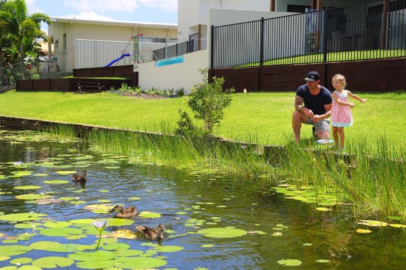 The gardens are low maintenance, totally secure with an electronic gate plus side access to bring in boat/caravan, and there is heaps of grassed area for children and pets to play outdoor games safely.