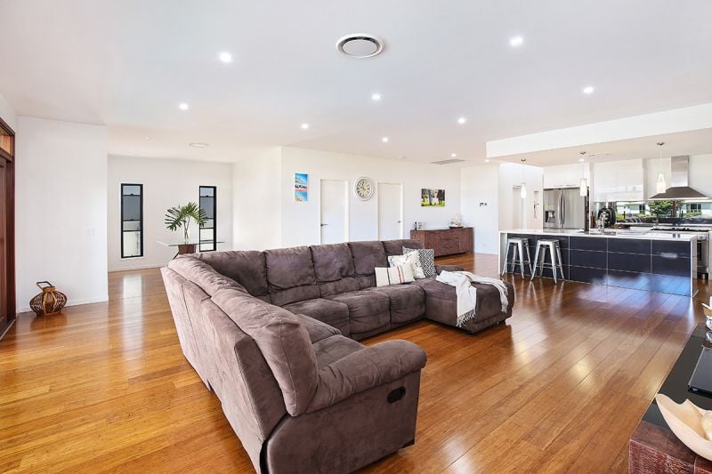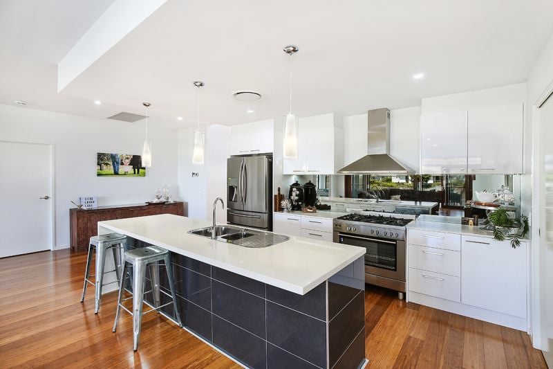 Features include: ducted air-conditioning, study nook, bamboo floors, polished concrete in alfresco area, waterfall feature on pool, stone bench tops, gas cook top, stainless steel appliances, mirror splashback, luxury bathrooms, abundant storage and striking custom designed timber features.