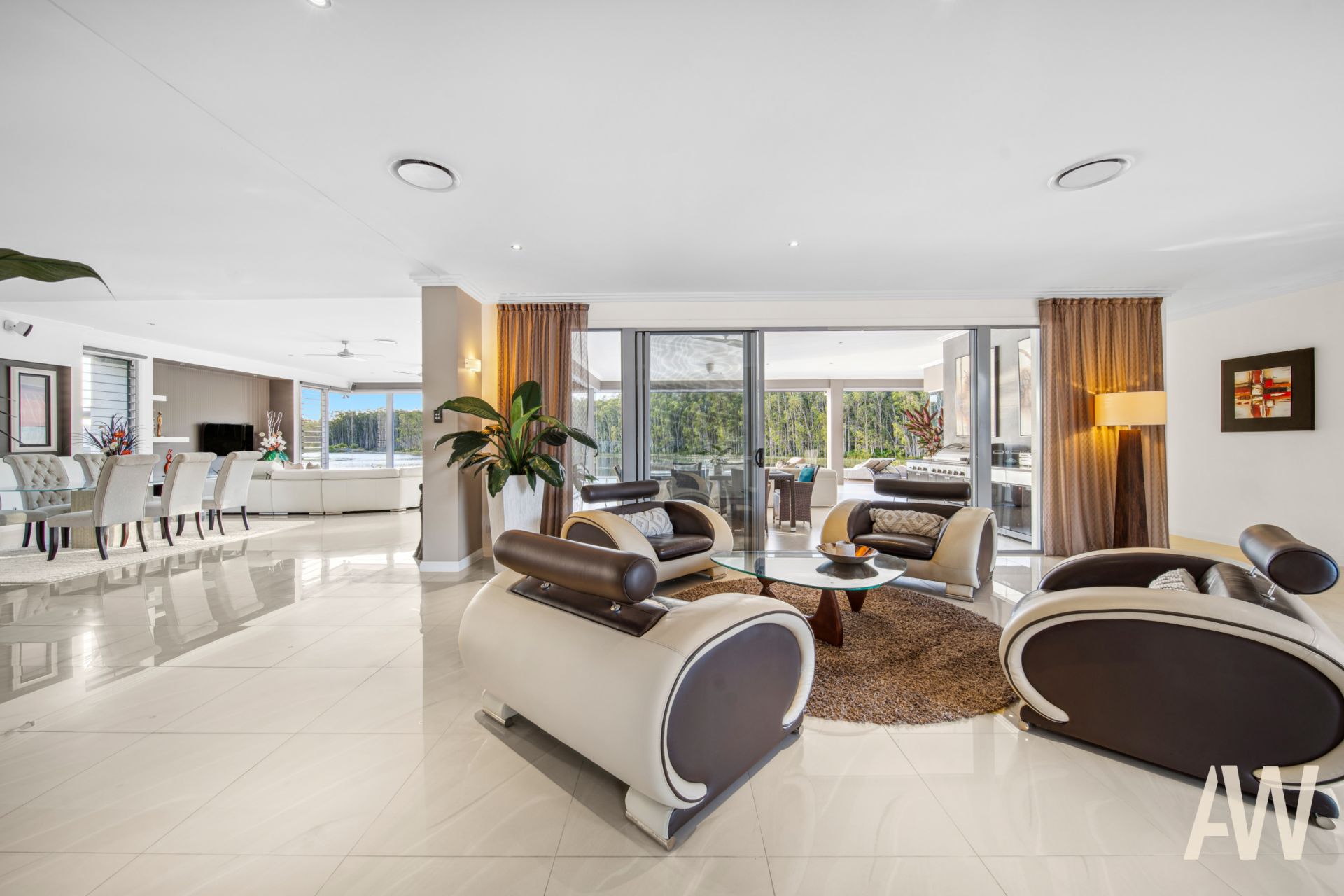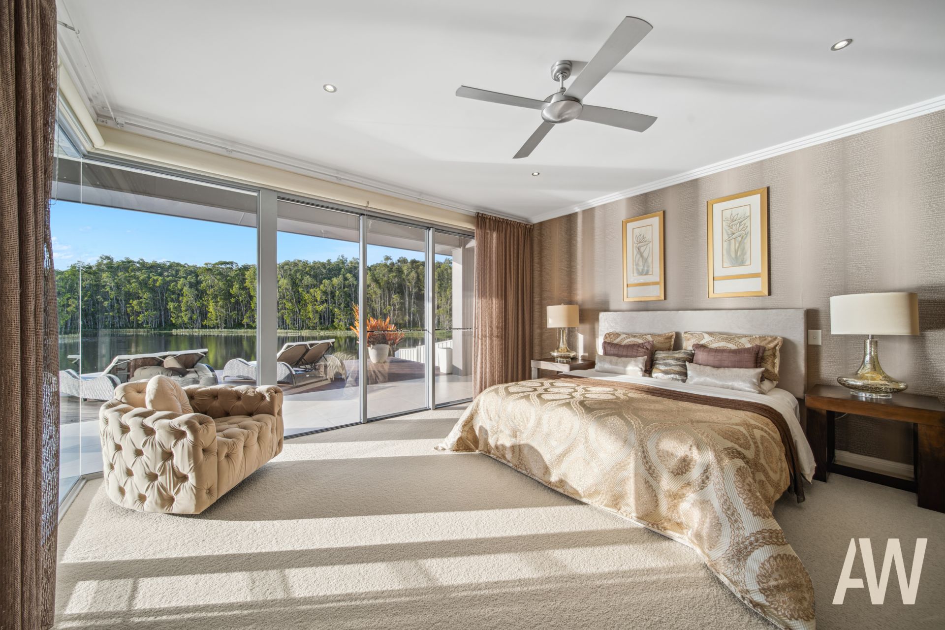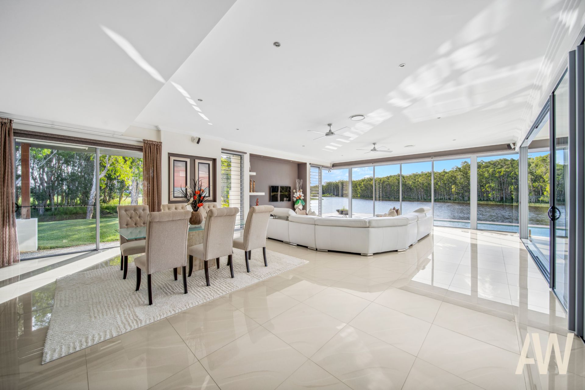 Amber Werchon Property presents to the market 10 Silky Oak Place, Pelican Waters, where luxury living meets breathtaking natural beauty and complete privacy. This north-facing, architecturally designed, award-winning masterpiece spans nearly 500sqm of custom-built space, set back from the street on an expansive 1,607sqm block, offering unparalleled seclusion in a quiet, end-of-lake position with only one neighbour.