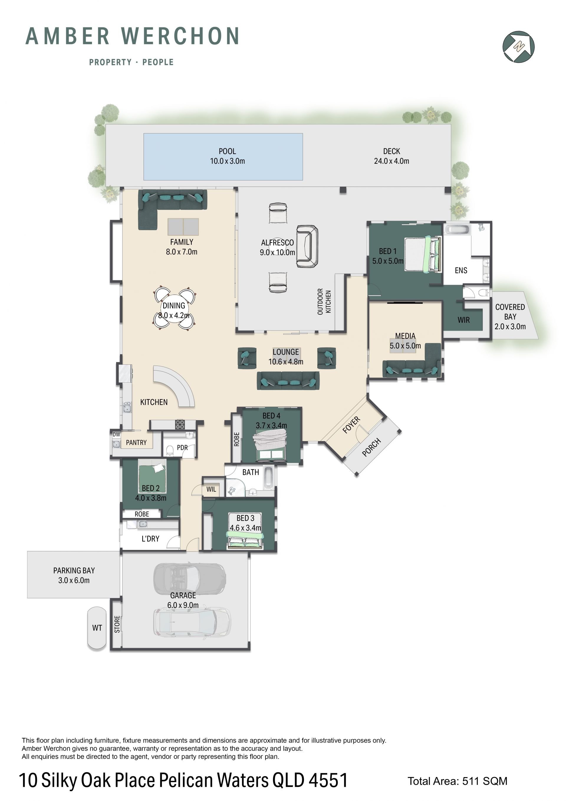 * Seamless indoor-outdoor living with expansive alfresco areas, built-in outdoor kitchen, and sparkling inground pool.