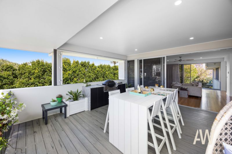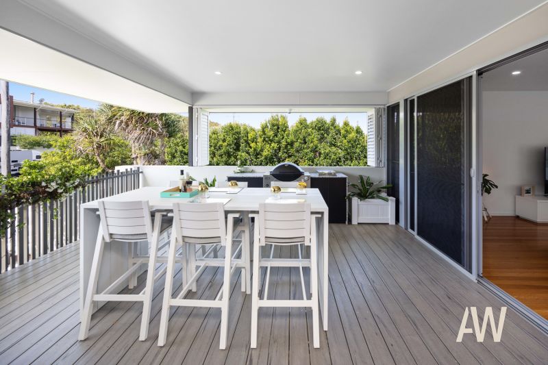 Upstairs, the north-facing living area opens onto an expansive deck, complete with a built-in outdoor kitchen – the perfect spot to enjoy al fresco dining while soaking in the sea breeze.