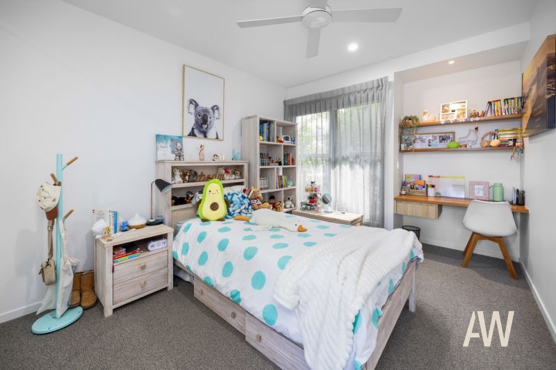 All bedrooms come with built-in robes and ceiling fans, ensuring comfort and practicality throughout. With bedrooms spread across both levels, this flexible layout ensures privacy for families and guests alike. The expansive 809m2 leafy block offers a private oasis, featuring a large backyard, a fun-filled cubby house, and plenty of space for children and pets to play.
