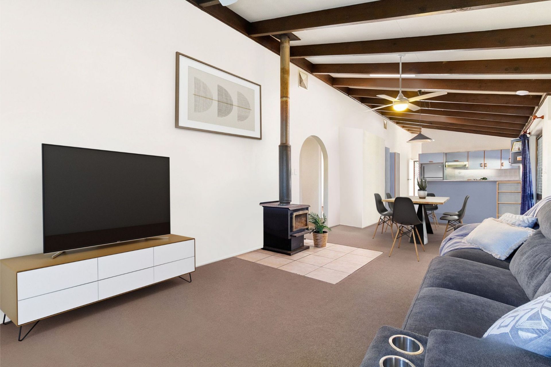 Designed with family living in mind, the floor plan offers a seamless flow through the oversized open-plan kitchen, dining, and living area, where soaring ceilings and a fully functional fireplace create warmth and character. The fourth bedroom, originally the home's garage, has been thoughtfully converted by previous owners and now offers the versatility of a spacious guest room, home office, or second living area.